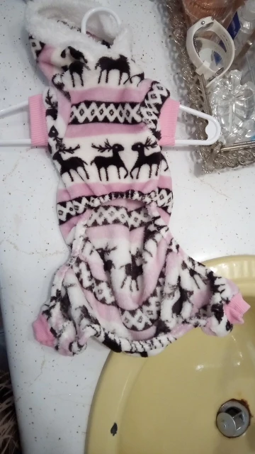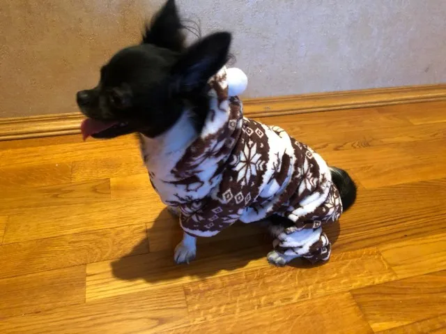 Комбинезончик ,размер XL на нашу собачку весом 4.600 по размеру подошел. Мягкий и удобный, не сковывает движений. Нашей собачке похоже понравился, вчера сразу же в нем вышли на улицу. Пошив качественный ,нитки не торчат .Но думала, что флис будет плотнее .Покупкой довольны.Заказ пришел относительно быстро. Товар к покупке рекомендуем.