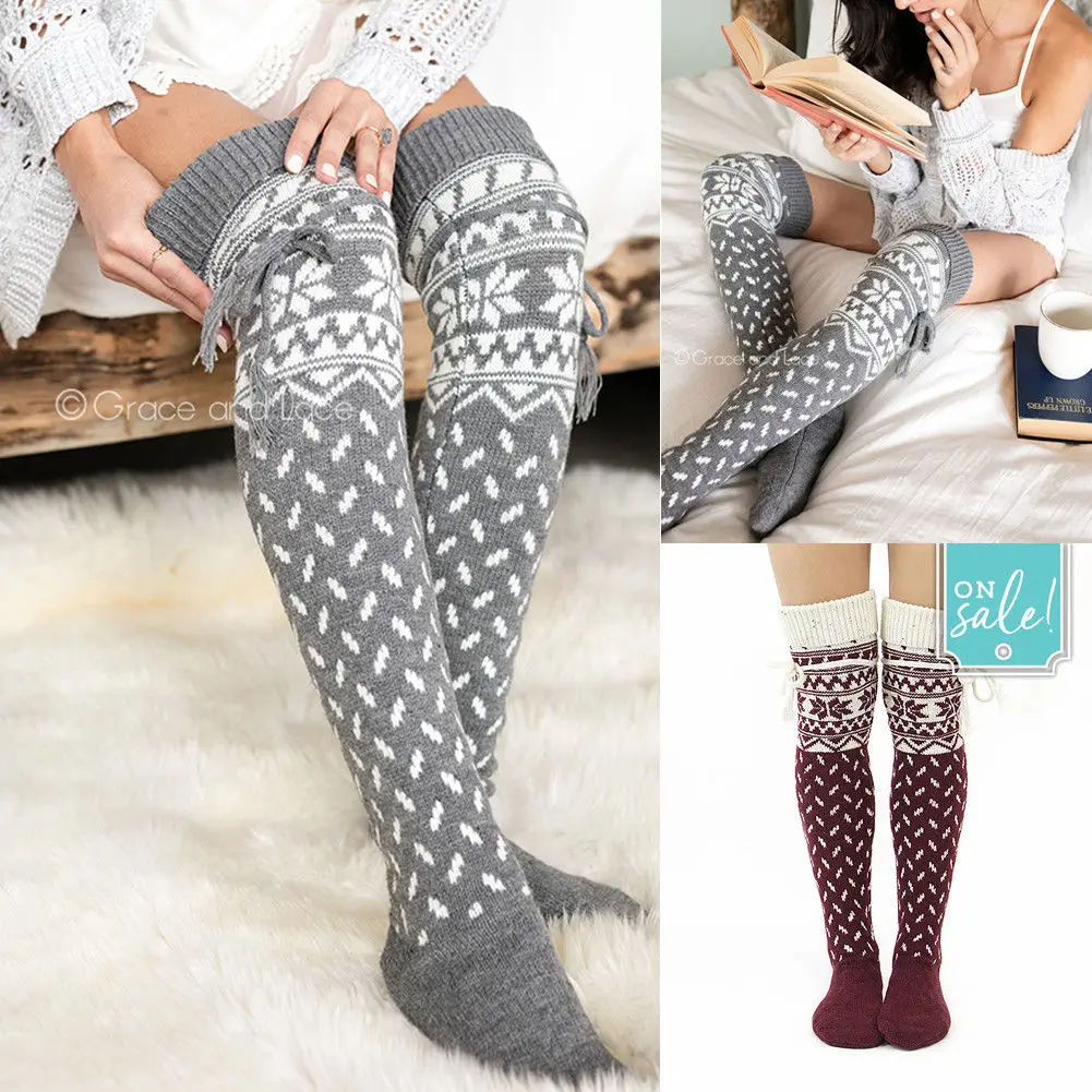 Женские вязаные ботфорты выше колена, Теплые Зимние ботфорты, новинка 2019