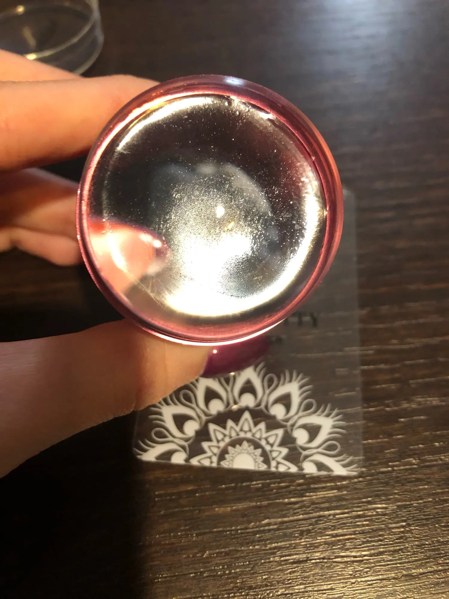 Сначала не поняла что делать, но когда обезжирила штамп, все получилось