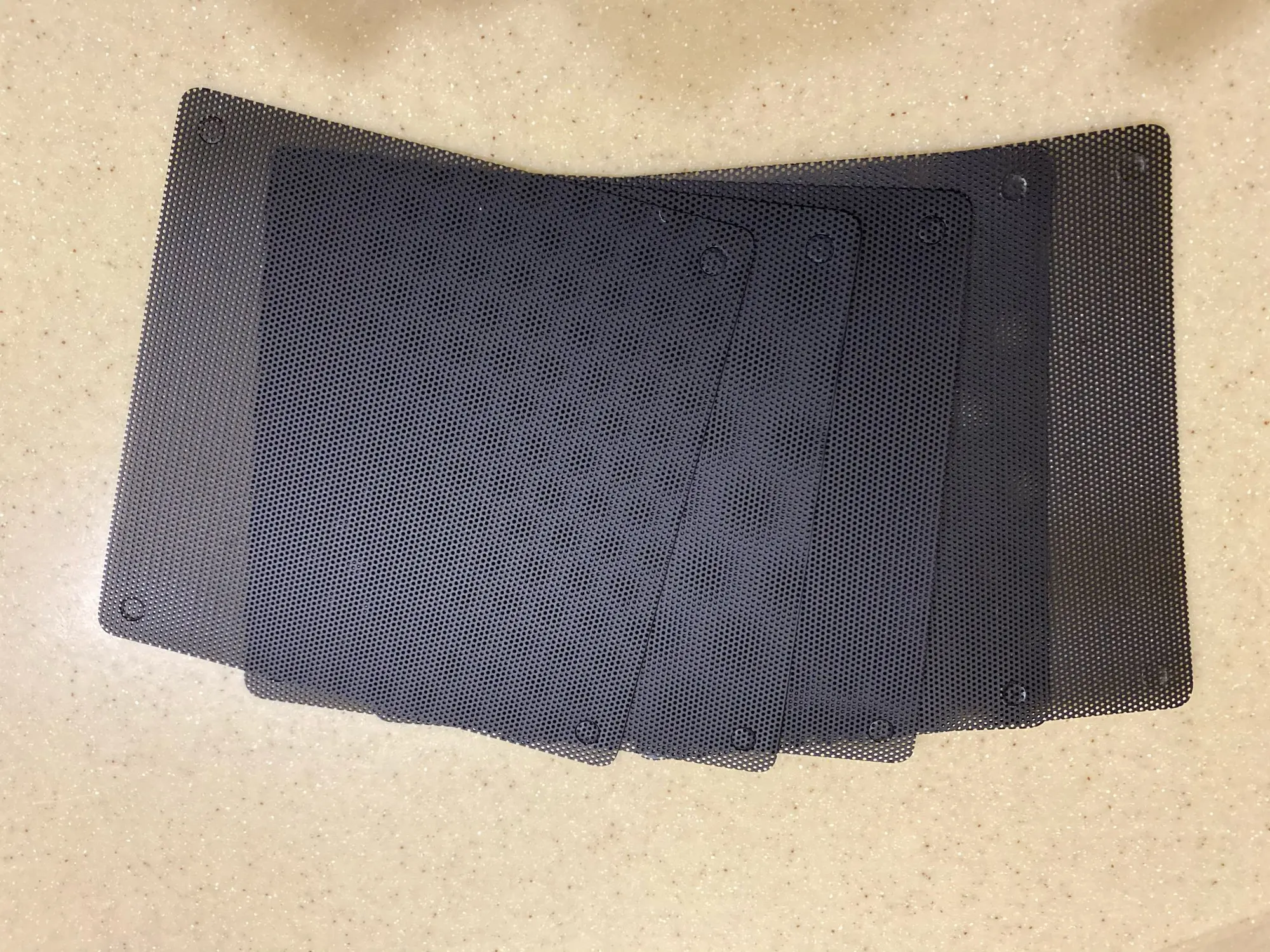 Доставка месяц до Тулы с отслеживанием.Несколько посылок соединили на таможне.Выглядит качественно,без запаха.Соответствие описания.С продавцом не общалась.Заказом довольна.Хорошие фильтры от пыли для ПК.В комплекте 5 штук.Упаковано хорошо,ничего не помялось.