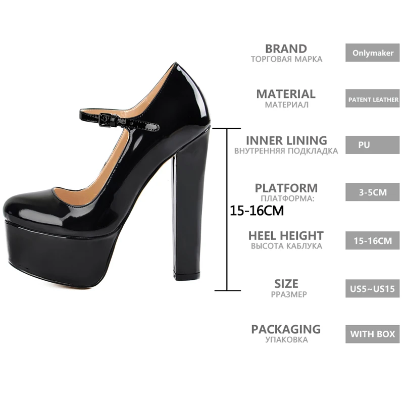 Туфли-лодочки женские Onlymaker, на платформе, с ремешком на щиколотке 15-16 см, с круглым каблуком, с пряжкой, большие размеры, US5-US15