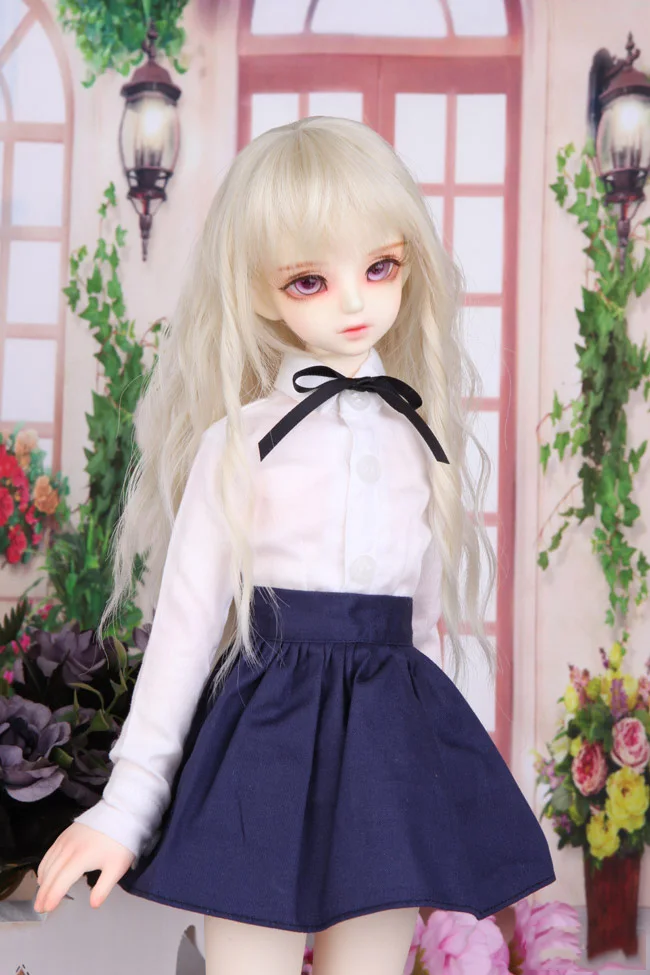 Bjdодежда для малышей Повседневный простой Универсальный костюм белая рубашка + синяя короткая юбка комплект из двух предметов, можно заказать размер по индивидуальному заказу