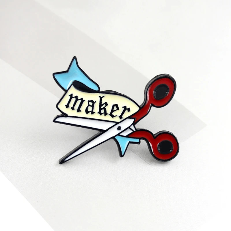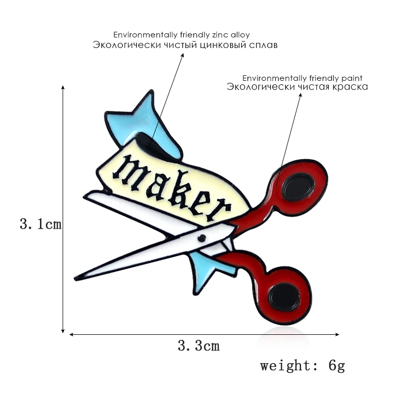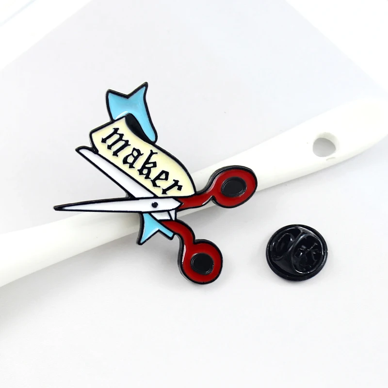Эмалированная брошь в виде ножниц, значок для рюкзака, шляпы, шляпы, жесткого рабочего, красного цвета