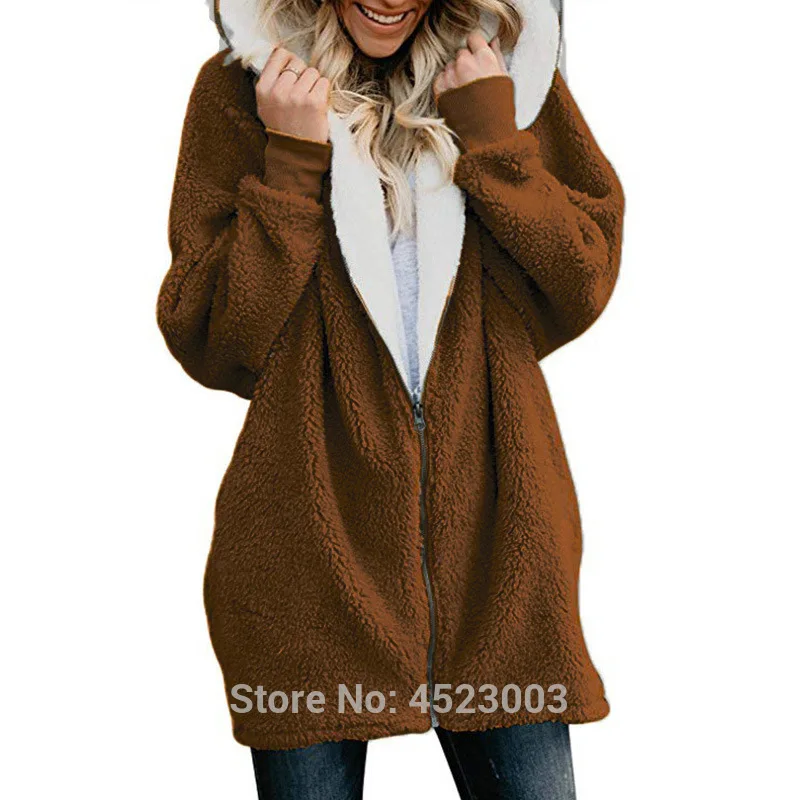 Новинка зимняя толстовка с капюшоном из искусственного меха с длинным рукавом Повседневная Женская Одежда Осенние теплые толстовки на молнии с мехом Свитшот
