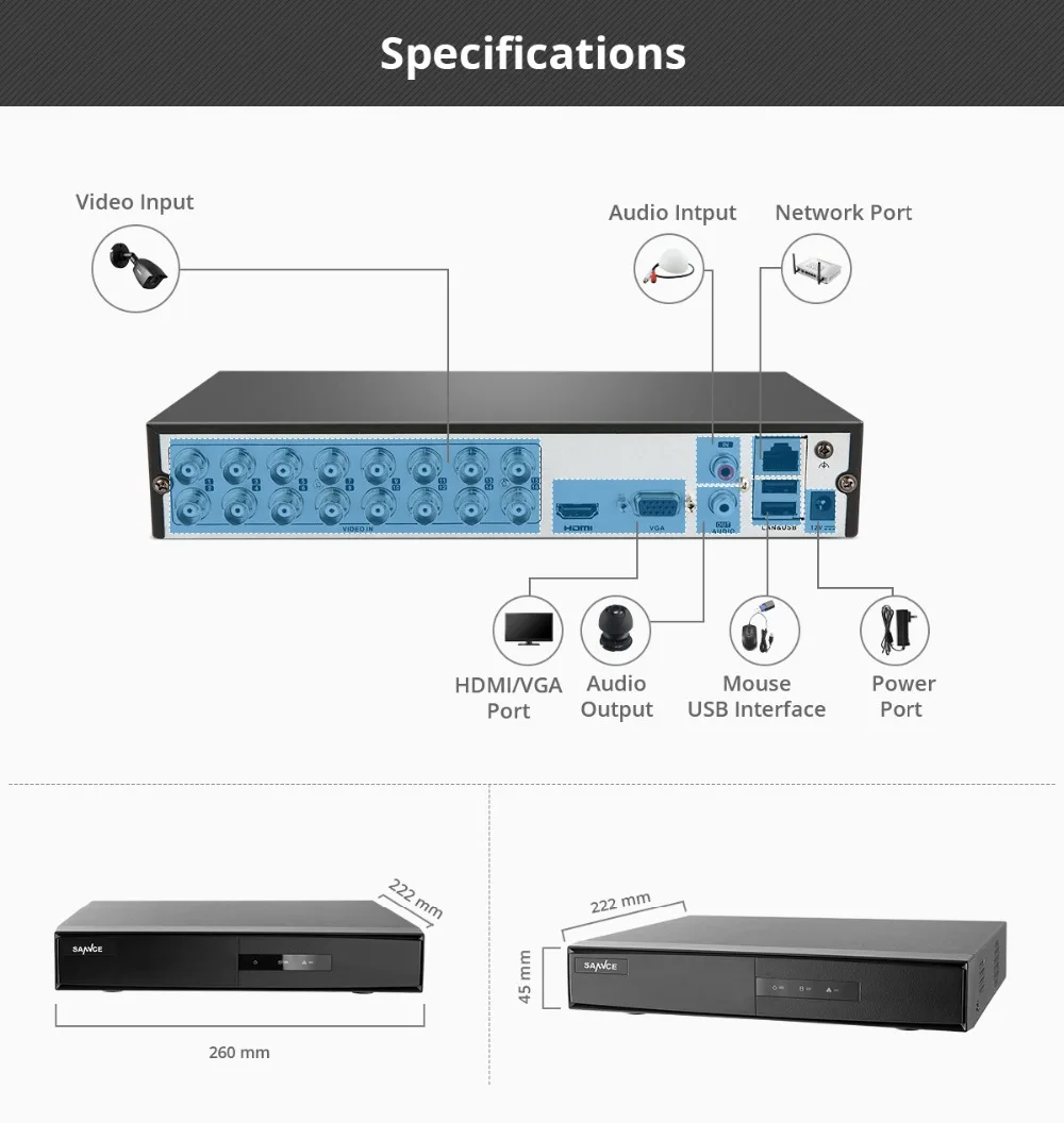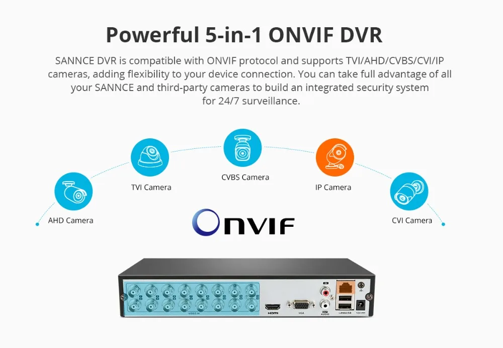 SANNCE 16CH 5-в-1 1080N наблюдения DVR, H.265 + домашней безопасности, видео-Регистраторы