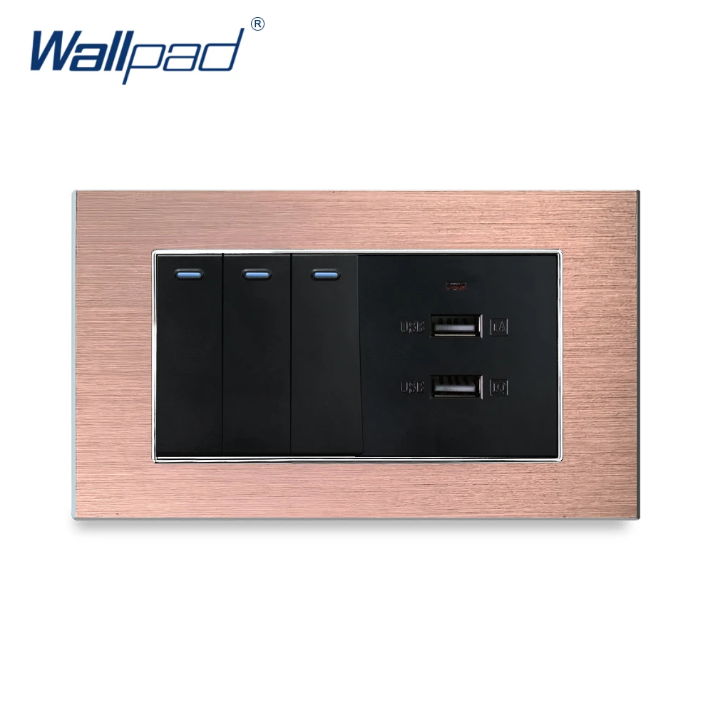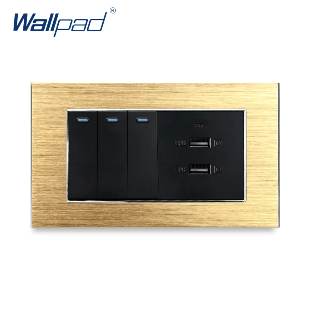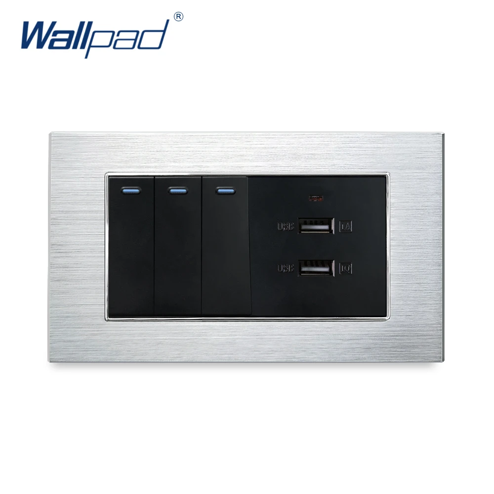 3-х клавишный 2-ходовой переключатель с 2 USB-зарядными устройствами Wallpad, роскошная настенная розетка, атласная металлическая панель, 146*86 мм, 5 В, мА