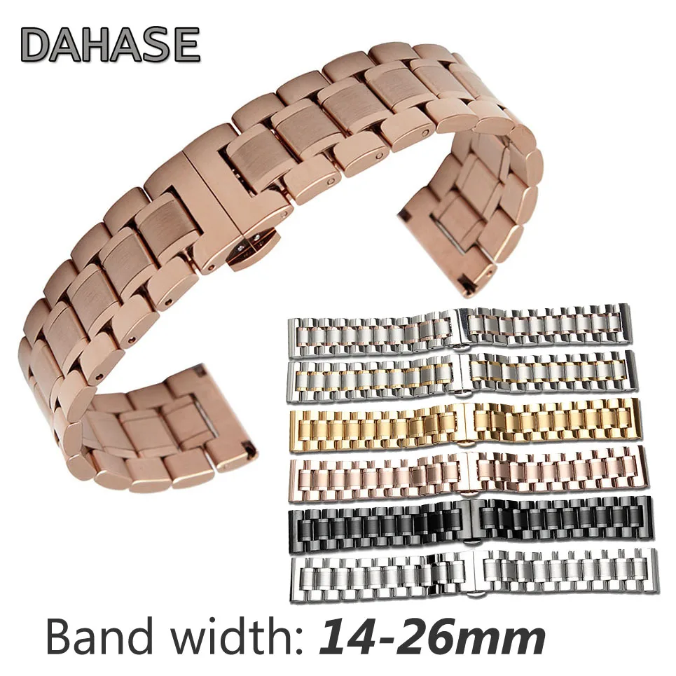 Ремешок сменный из нержавеющей стали для наручных часов, браслет с застежкой-бабочкой, 12 14 15 16 17 18 19 20 мм 21 22 мм 23 24 25 26 мм