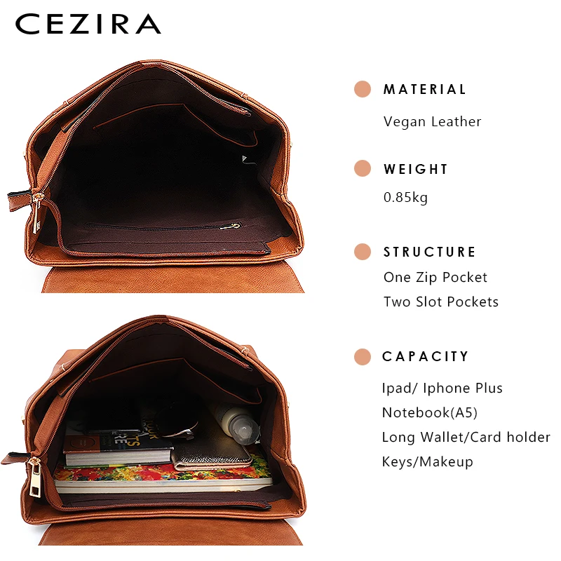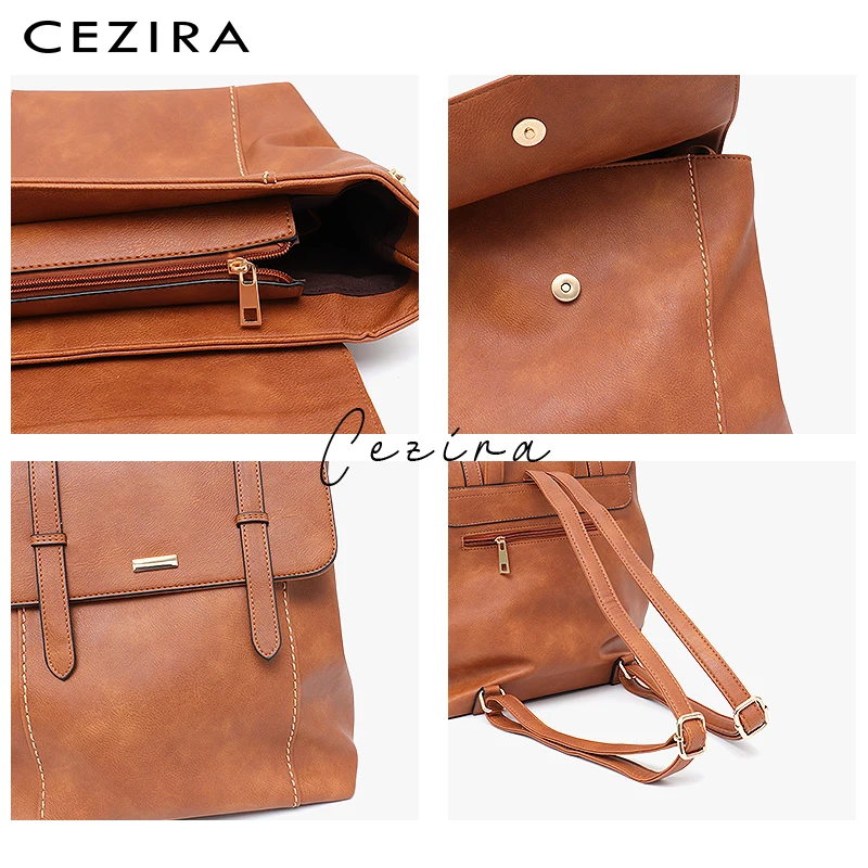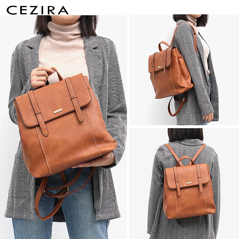 CEZIRA большой Модный женский рюкзак из искусственной кожи в английском стиле, большой школьный ранец для девочек, повседневная женская сумка через плечо