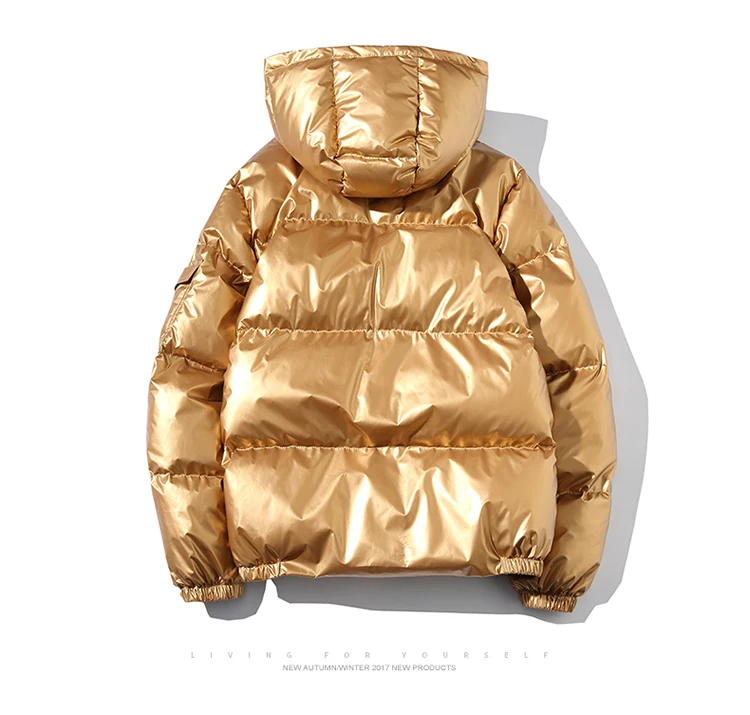 Женский и мужской пуховик, зимняя Блестящая СеребристаячернаяЗолоти...