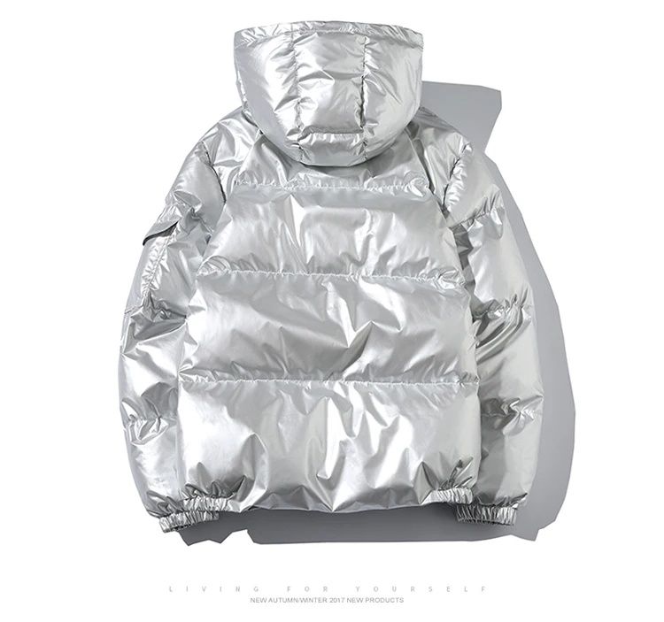 Мужская Утепленная куртка с капюшоном, серебристая Яркая блестящая ...