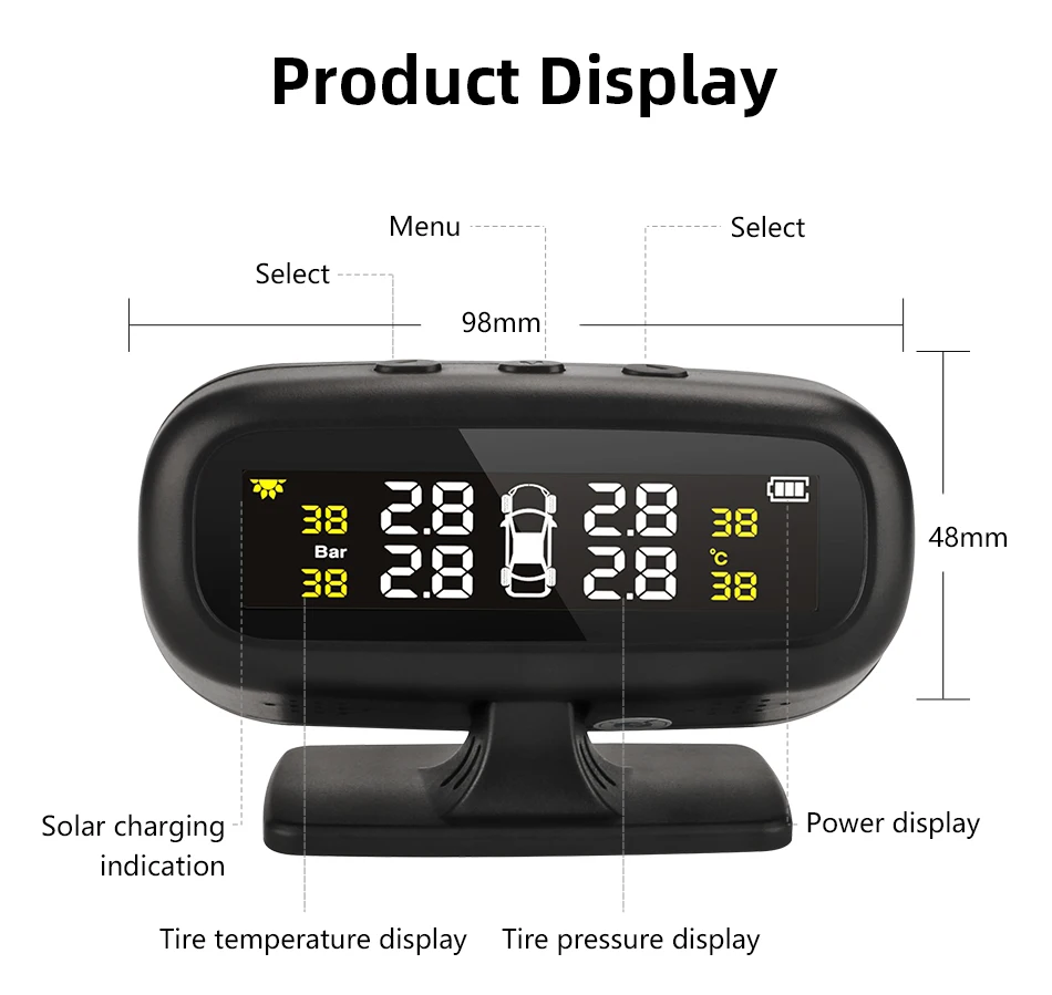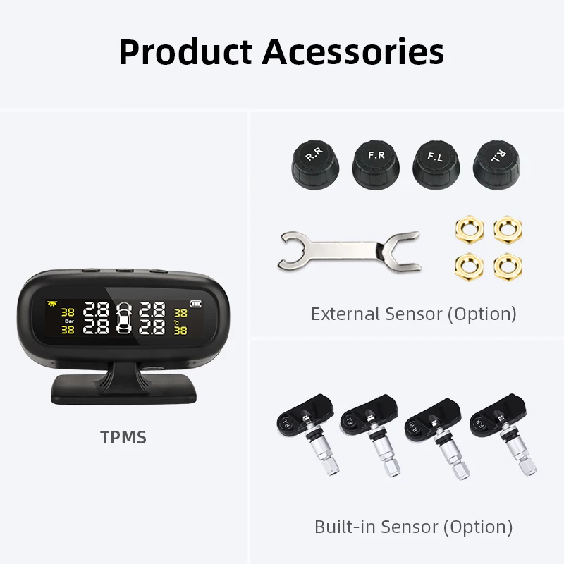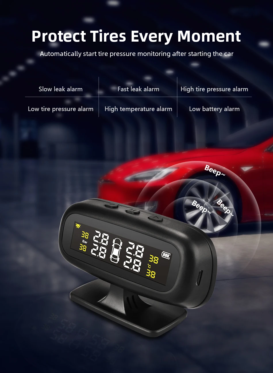 Система контроля давления в шинах Jansite, система контроля давления в шинах с Предупреждение датчиками и ЖК-дисплеем, на солнечной батарее