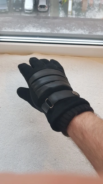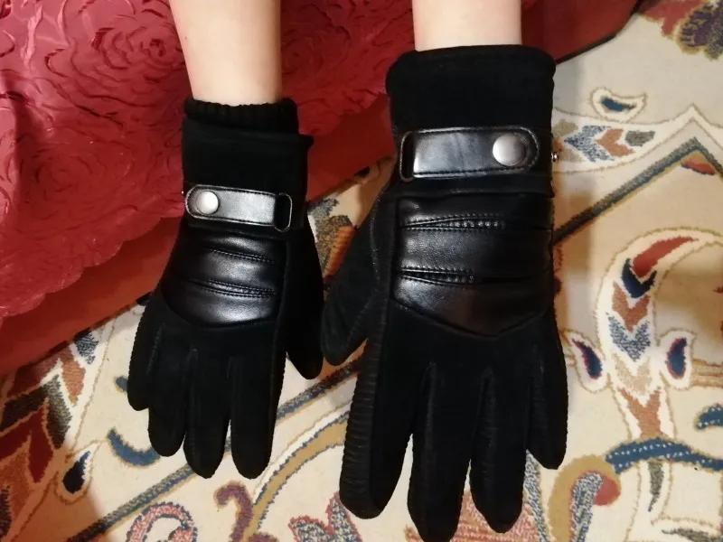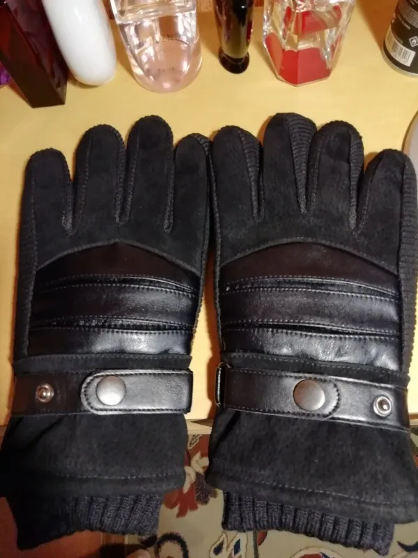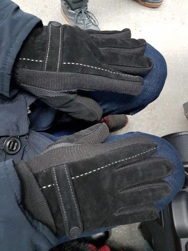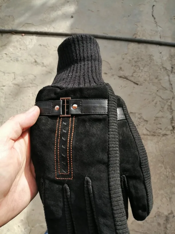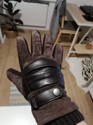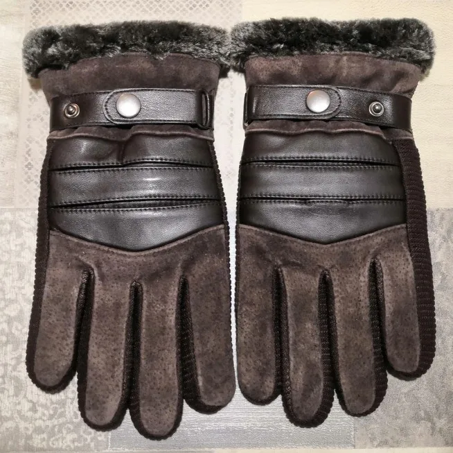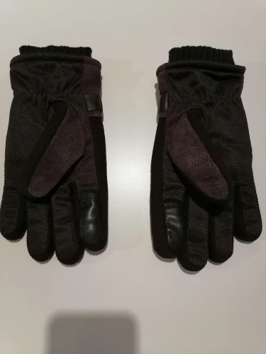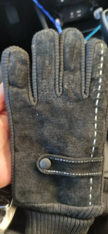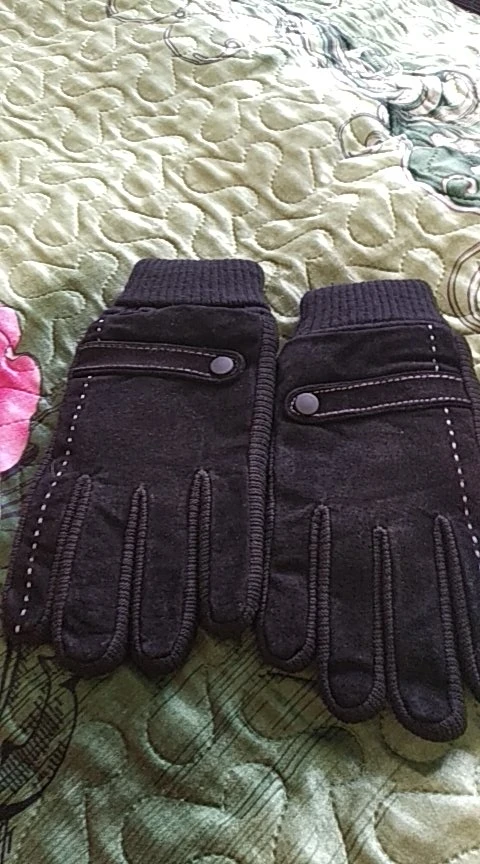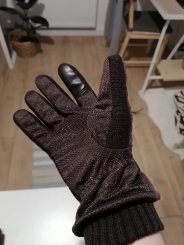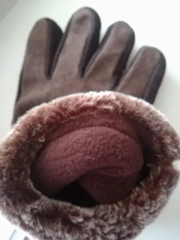 Симпатичные перчатки, толстые, теплые.Кожи (замши) там, конечно, чисто символически, но выглядит неплохо, хоть и не идеально по качеству исполнения и потёртостям. На небольшие руки подростка 14 лет слегка велики. Крупный мужчина кисть просунуть в перчатку не смог. Среднего размера, в общем. Хорошо, что есть резинки. Экран мобильника на перчатки реагирует, но смысла в этом нет, они очень громоздкие.