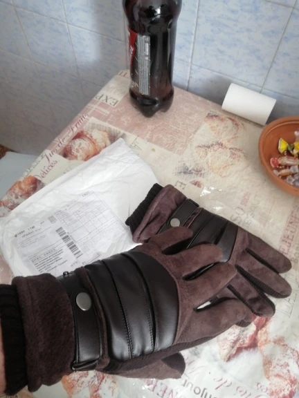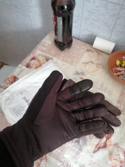 Отличные перчатки,размер подходит , внутри утепленные ,есть накладка на указательном пальце для пользования смартфоном ,не снимая перчаток .Доставка на 5+
