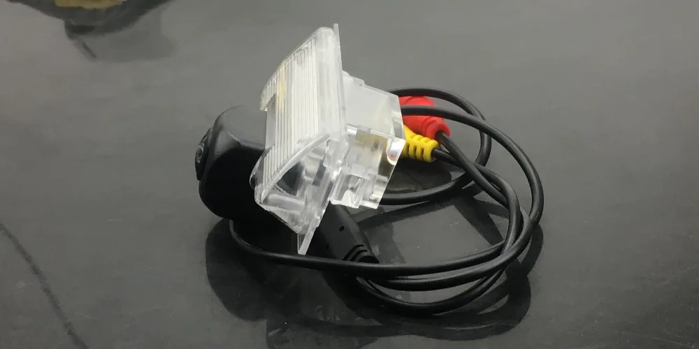 . Закрепите камеру там, где был светильник номерного знака.. Подключите встроенный светильник номерного знака камеры к тому месту, где был подключен светильник номерного знака, чтобы получить питание. Подключите питание камеры к тормозным огням-красный провод к положительному и черный провод к отрицательному.. Подключите видео кабель камеры к удлинительному шнуру.