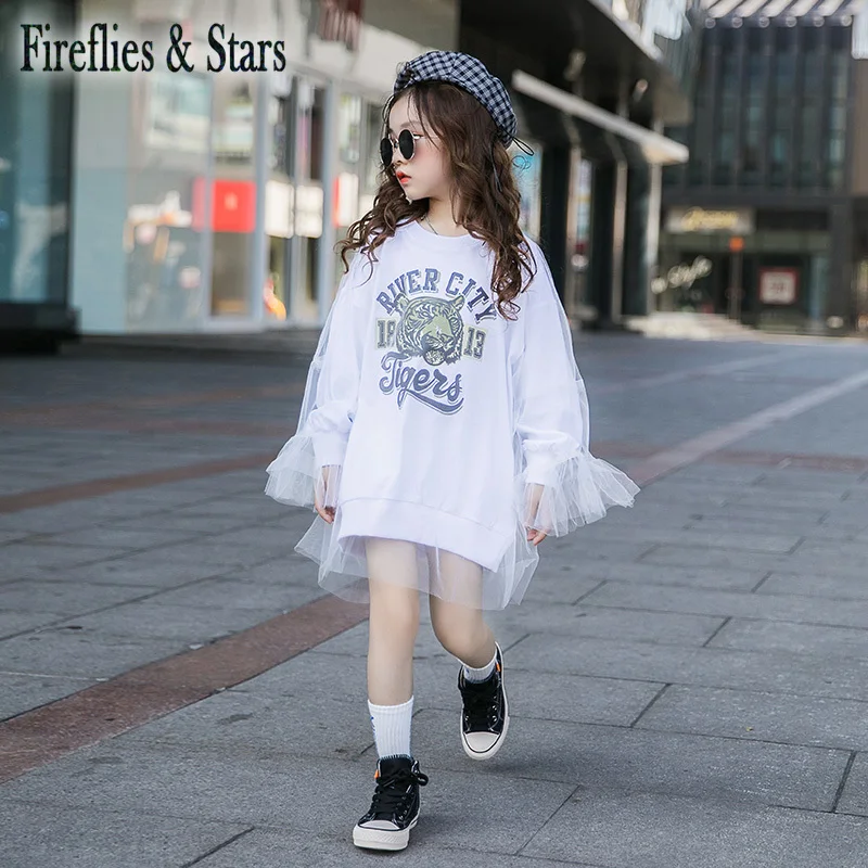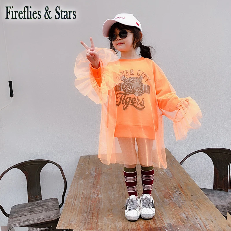 Название:Весенне-осенний свитер для девочек Футболка для малышей Детские топы, Детская уличная одежда с принтом тигра, сетчатая накидка, рукав-лепесток, манжета, от 4 до 14 лет