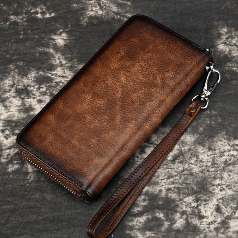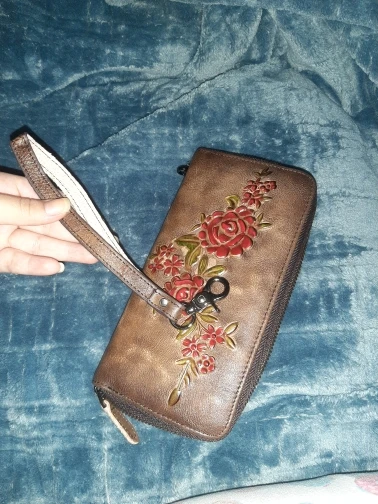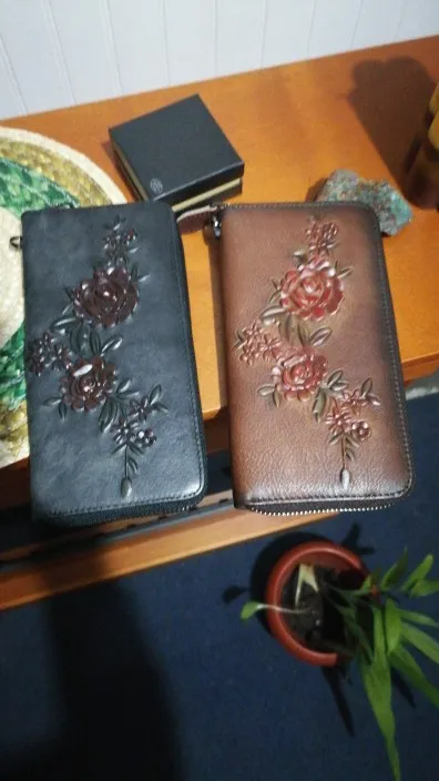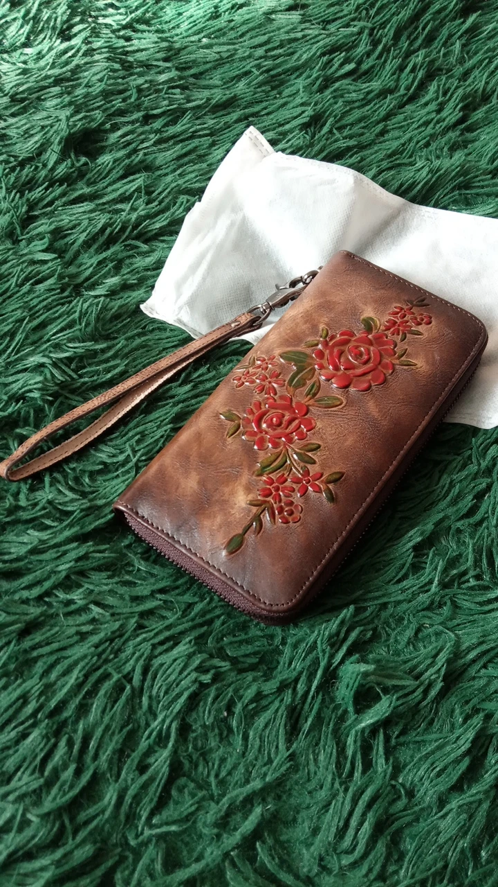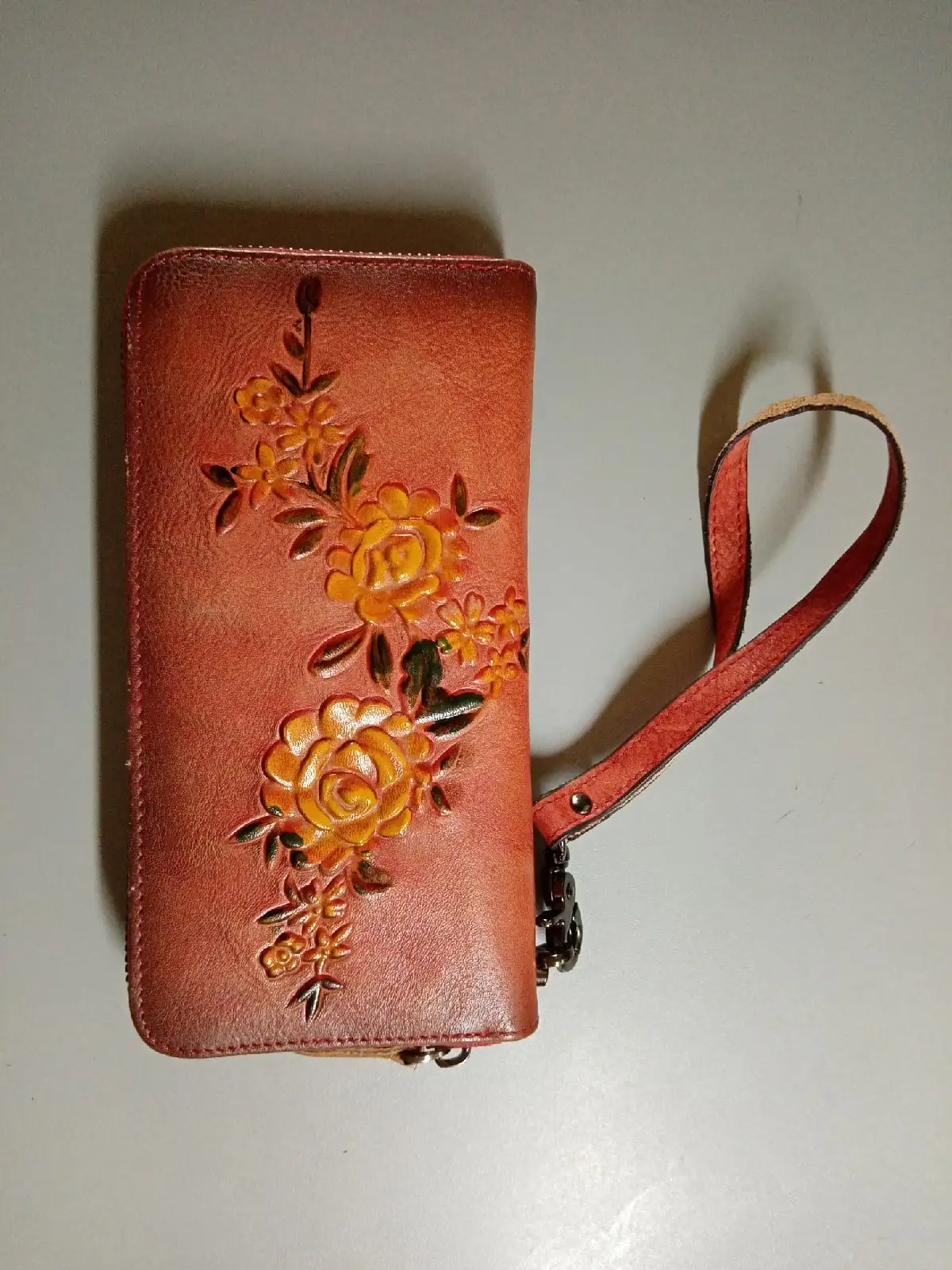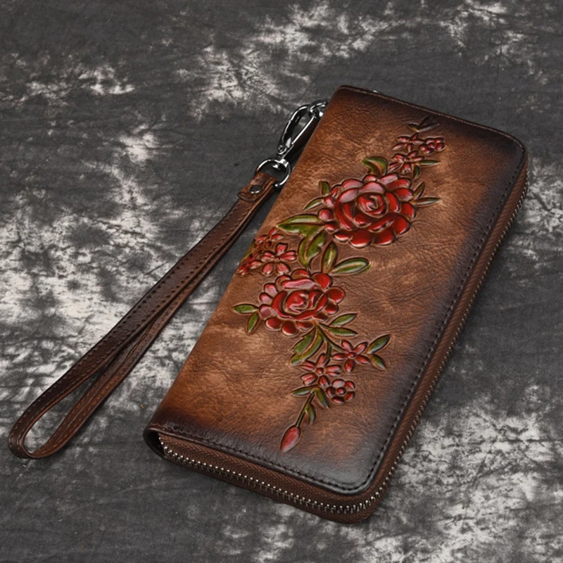 Женский Длинный кошелек из натуральной кожи, удобный бумажник для денег, кредитница, Тисненый Цветочный клатч из натуральной кожи на молнии, сумочка на запястье