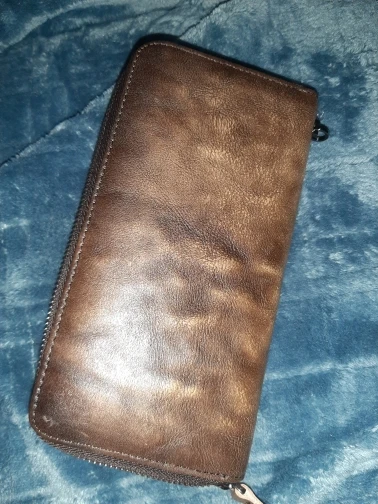 Все прекрасно. Вроде бы натуральный, определить сложно, так как края подвернуты. Но запаха химии нет. Замок хорошо открывается. Размер кошелька больше, чем я ожидала.