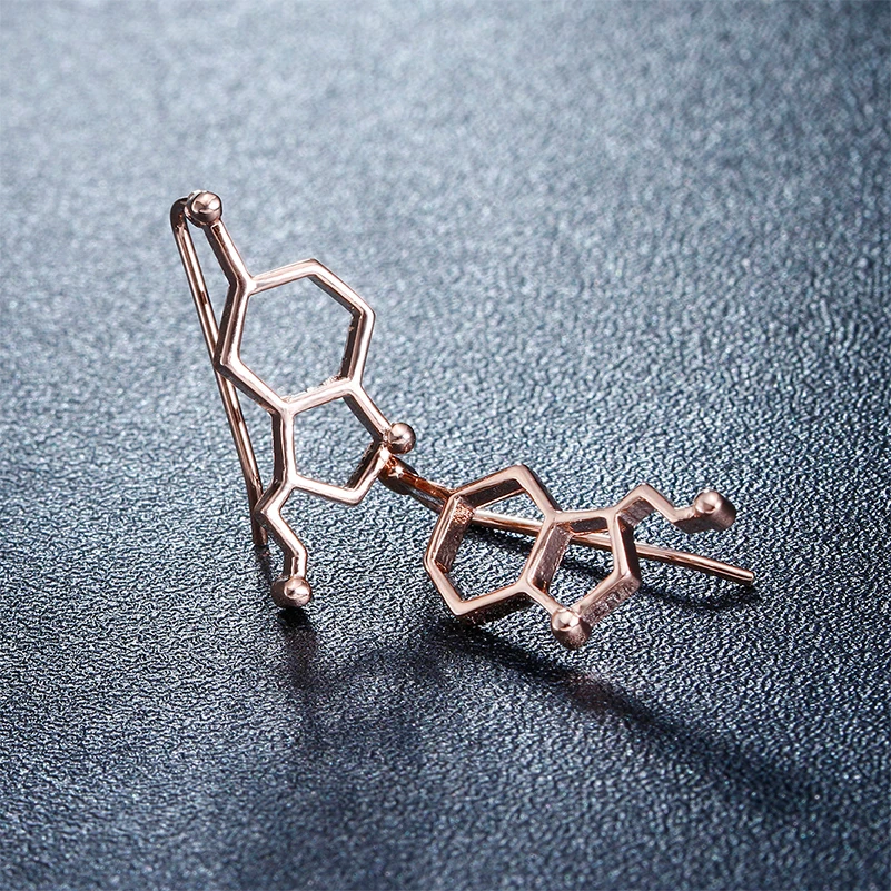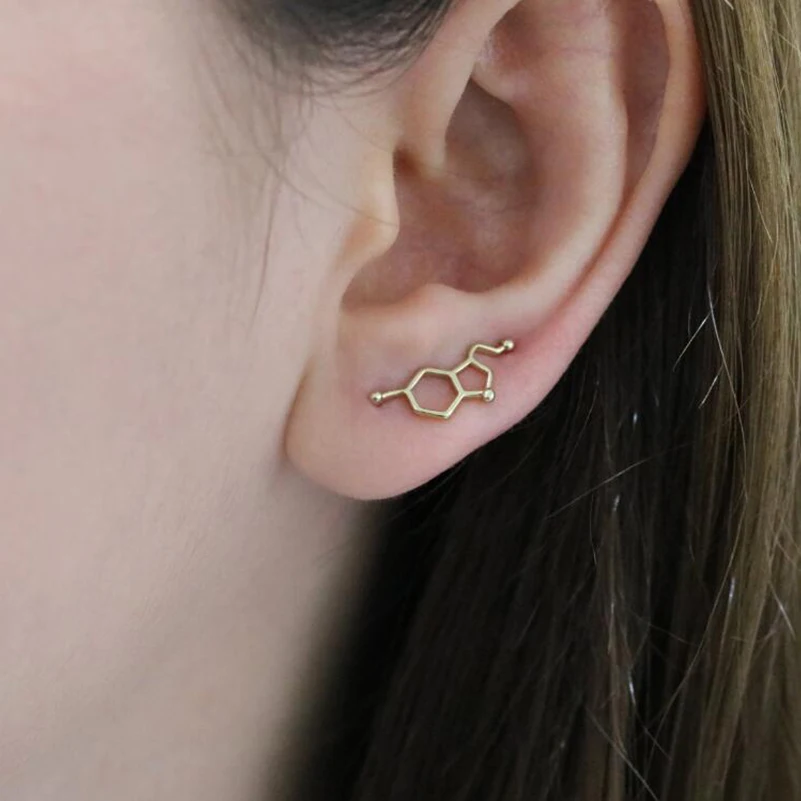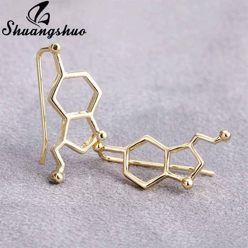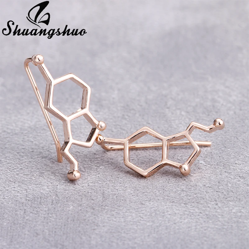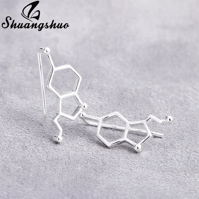 Shuangshuo 2018 Мода молекула серотонина уши альпинисты для женщин химическое строение наука серьги-гвоздики гусеницы подарок Brincos