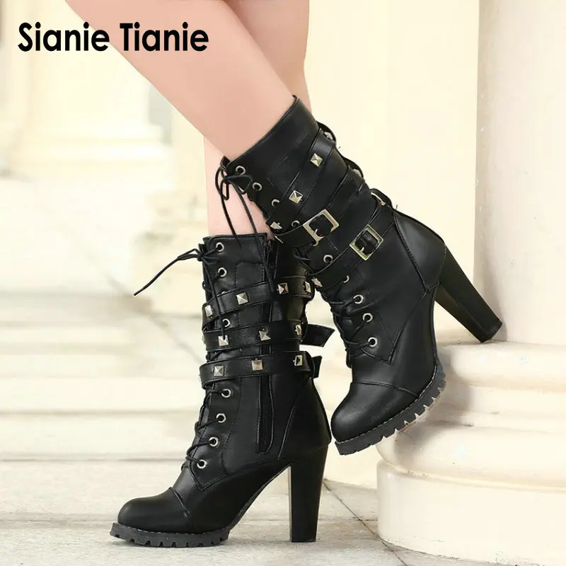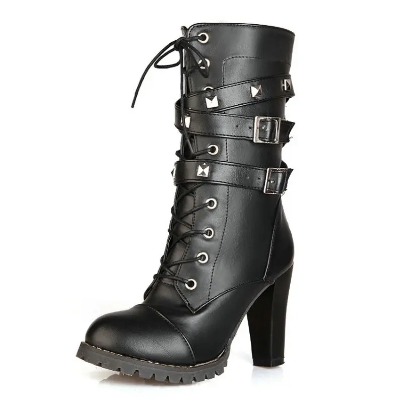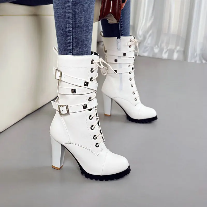 Женские нескользящие ботинки на квадратном каблуке, со шнуровкой и заклепками