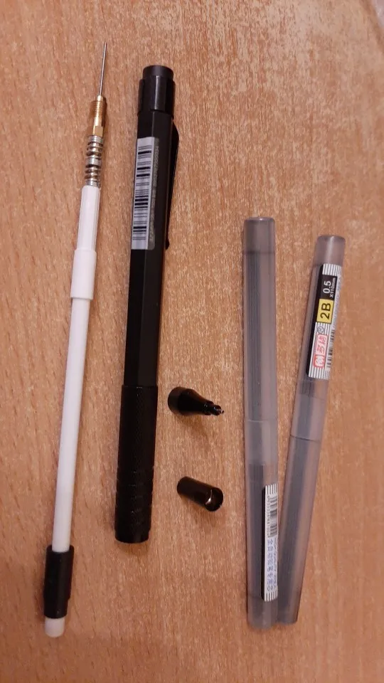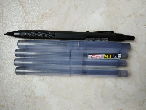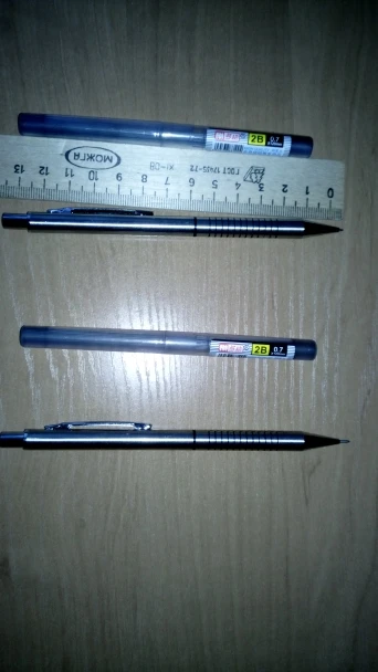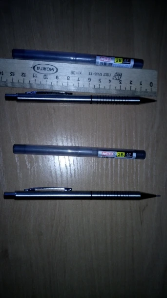 Хороший карандаш. Но корпус карандаша не соответствует фотографии, я хотел карандаш именно с накатанными диагональными насечками, пришёл с небольшими горизонтальными насечками. Основные механизмы и корпус металлические. Масса, чуть тяжелее пластмасового.Пришло 2 карандаша, в место 1.
