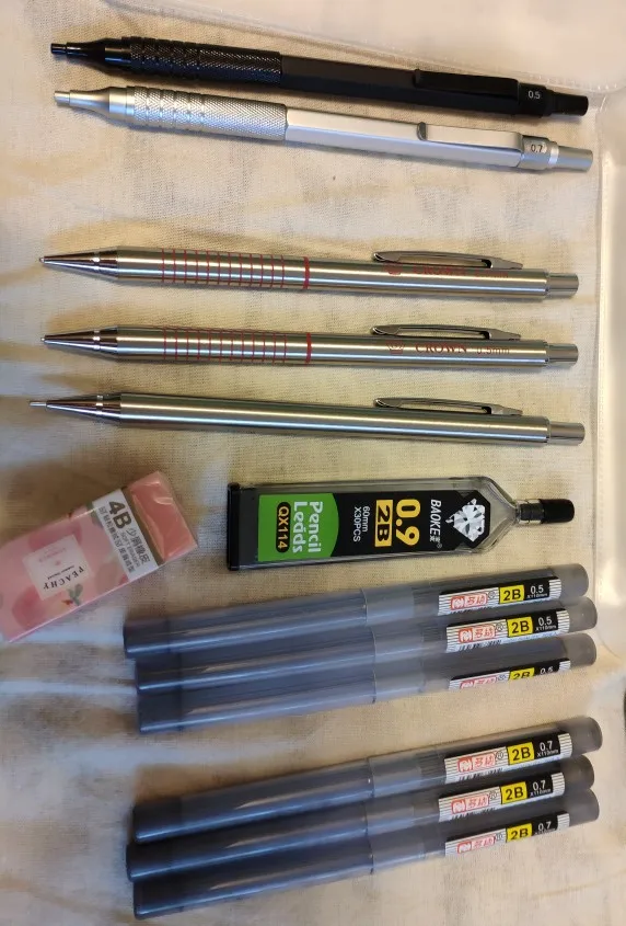 Карандаши в порядке, немного жестко пишут на бумаге.