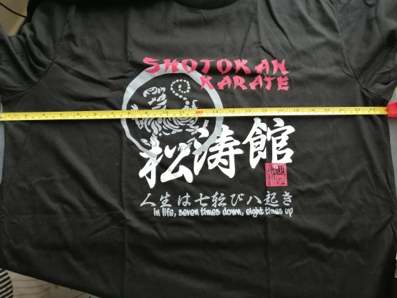Заказал день 2 апреля, футболка и был доставлен в Италию на День 14 апреля, хорошо упакован. Тот, который вы видите, 3XL (европейский размер). Хлопок хороший и слегка эластичный, а принт красивый. Надеемся найти больше предметов, связанных с боевыми искусствами и философией, которые празднуют великие мастера, такие как Azato, kase, Funakoshi и т. д.