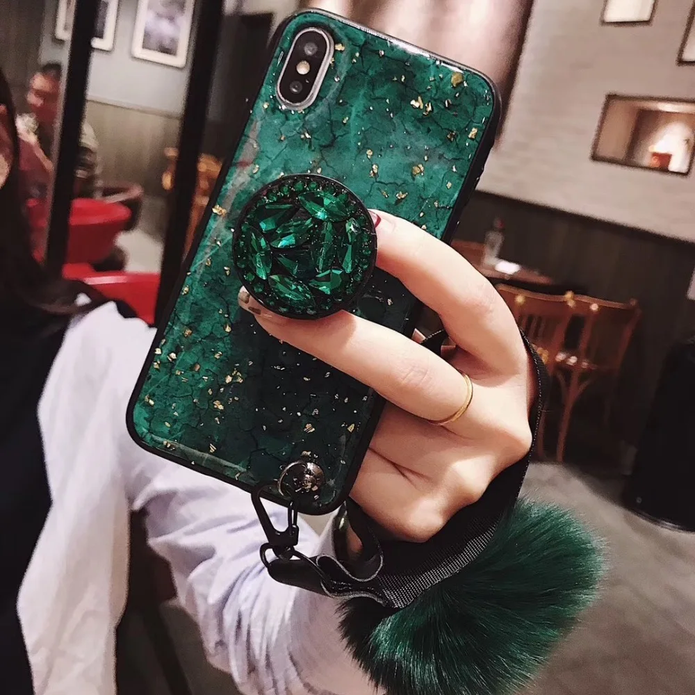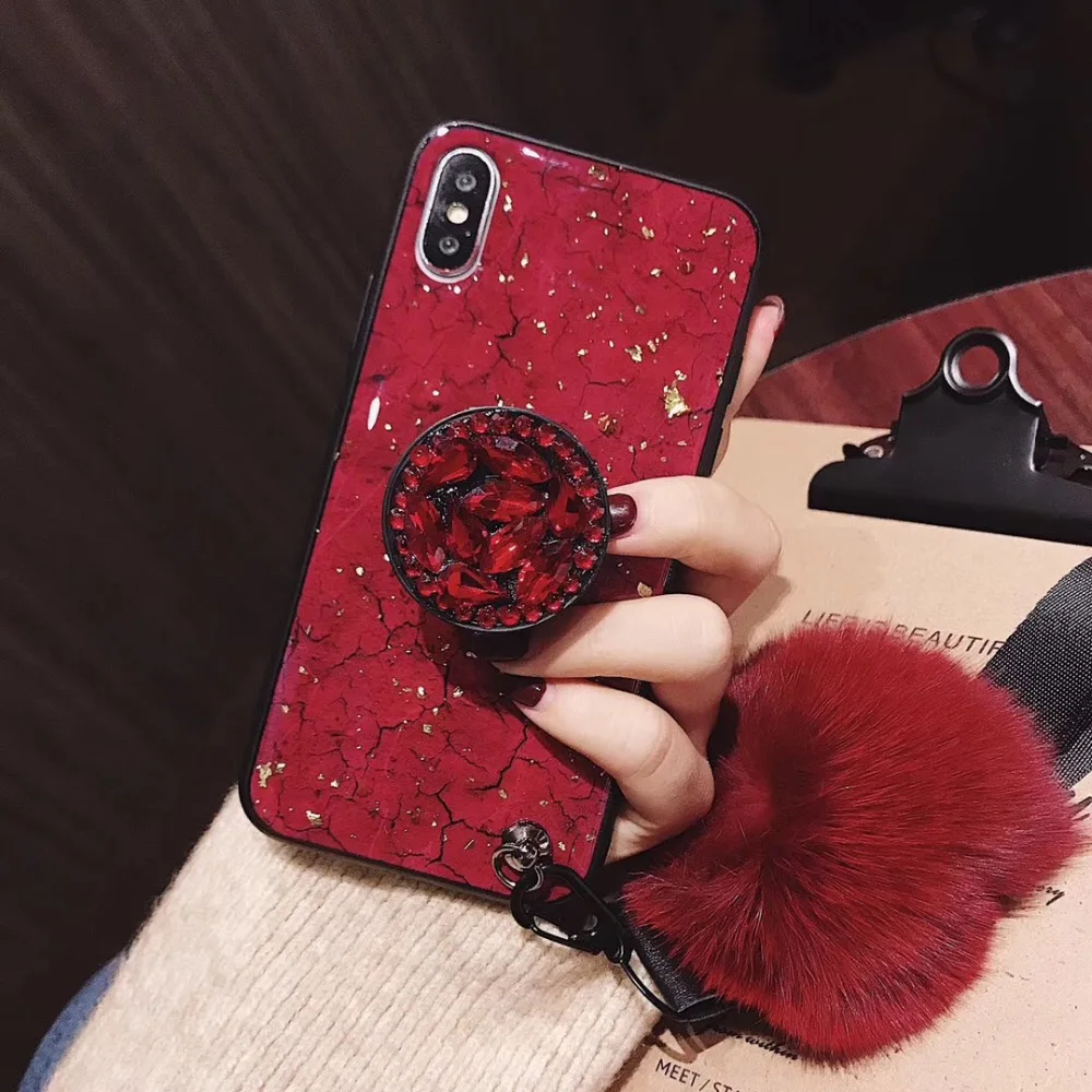 Роскошный модный чехол с бриллиантовой подставкой и помпоном из лисьего меха для iphone XS MAX XR X flake с ремешком для iphone 8 7 6s 6 plus 8plus 7plus 6 plus