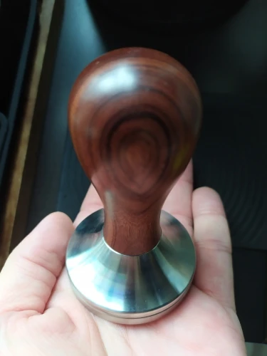 отличный темпер, доставка всего 2 недели заняла, дерево действительно чёрное, после мытья даже спиртом, цвет не изменился, очень увесистый, и шикарно был упакован!!! идеально подошёл к рожку фирмы делонги.