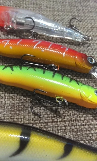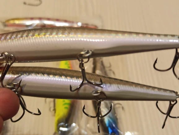 воблерасики неплохие, крюки хорошие и покрашены в общем неплохо, мне понравились). единственное что наверно надо - капнуть клея или лака на петли. есть дырочки. и хоть по конструкции они влиять не должны, потому как внутренняя проклейка, но для самоуспокоения лучше проклеить)