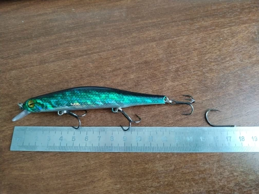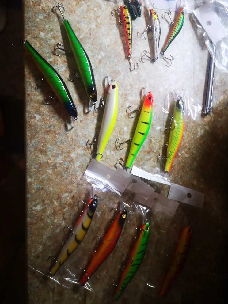 Хорошие приманки, игра очень хорошая, за эти деньги шикарная покупка. Размером чуть меньше чем ожидал, для сравнения рядом воблер от страйк про-инквизитор 110 идентичен.