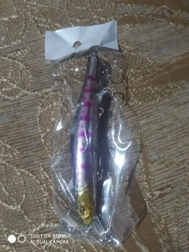 Супер красивый воблер. Сделан очень качественно.Переливается цветами.Крючки острые. "Клюнул"... на распродаже за 102,99 руб.сейчас все подешевели. Говорил Дед не торопись подсекать...не послушал.,заглотил по самые жабры. Описанию магазина соответствует.Покупкой очень доволен.Доставка две недели.Продавцу огромное спасибо.Извиняюсь за задержку с подтверждением получения товара и отзывом.Запутался в заказах... Рекомендую магазин.