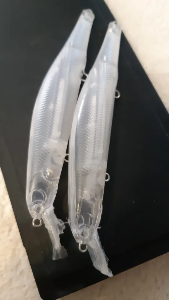 Приобрёл пару болванок на 110 орбит. Прям интересно что же там, внутри под краской. Теперь всё как на ладони. Один шарик у головы приманки. СДЗ-магнитка, очень даже хорошего качества. Причём состоящая из четырёх магнитов, которые срабатывают по отдельности и вместе в зависимости от прилагаемой силы на взмах. Ближние к хвосту магниты слабее, а те что ближе к голове- самые мощные. Петли пришлось заливать клеем- шатались. Шов сверху и снизу тоже на всякий случай проклеил, т.к. попадались белесые промежутки. Лопатка изначально обмотана стеч-пленкой, вероятно что подготовлена под покраску воблера. Глазок, крючков и колечек в комплекте нет- но этого добра у меня хватает. В общем, вот такой вот полуфабрикат получился. Оснащу крючками, подкрасим глазки и будем пробовать ловить на бесцветную, почти прозрачную рыбёху. Рекомендую. 65,53 ₽.