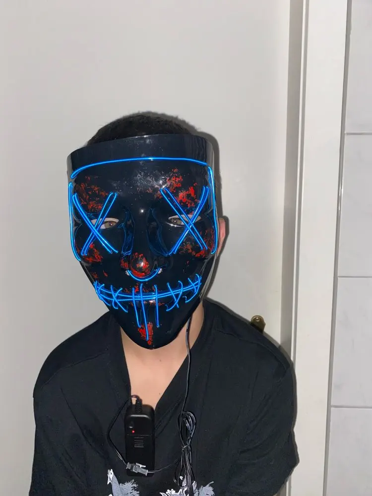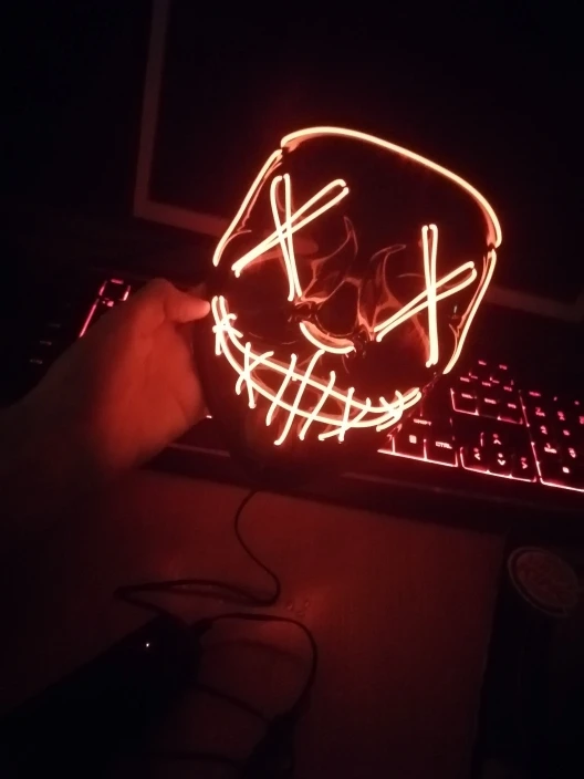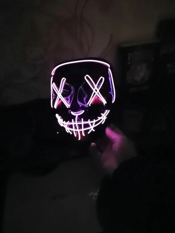 Светодиодная неоновая маскарадная маска, маска для Хэллоуина, светится в темноте, маска ужаса, светящаяся маска