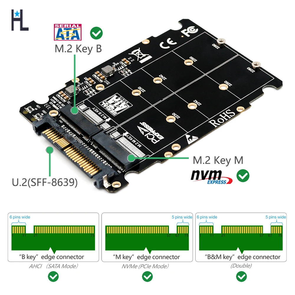 M.2 NVME SSD ключ M ключ B SSD к адаптеру U.2 SFF-8639