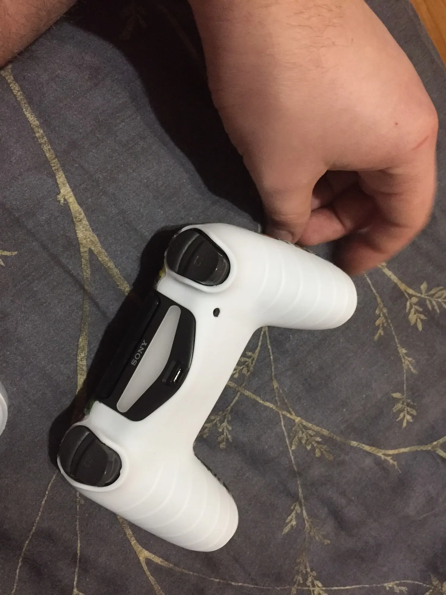 Чехол целый, даже почти ровно сел. На ощупь скользковат, в игре не испробован пока. Единственное только, чехлы на стики шаркают об чехол и, как следствие, туже двигается стик. Причем только левый. А так покупкой довольна, продавец хорош)
