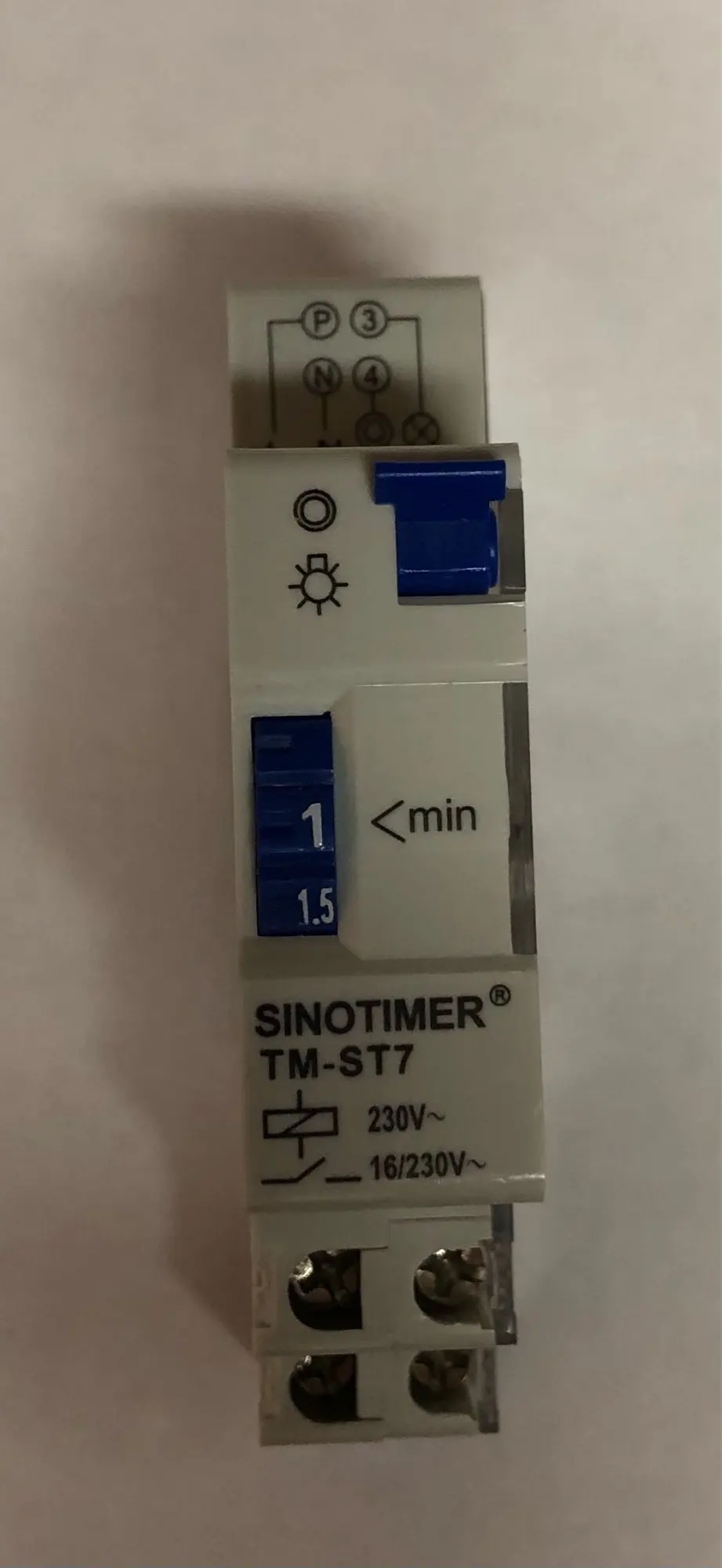 Переключатель для освещения лестницы с интервалом в 7 мин, 20 мин, 18 мм, одномодульный, DIN-рейка