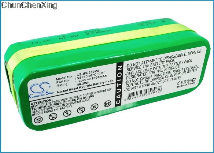 Аккумулятор Cameron Sino 2800 мАч для Infinuvo CleanMate 365, QQ1, QQ2, QQ2 Basic, QQ-2-зеленый, QQ2 LT, QQ-2 Plus, QQ-2-белый, QQ-2L