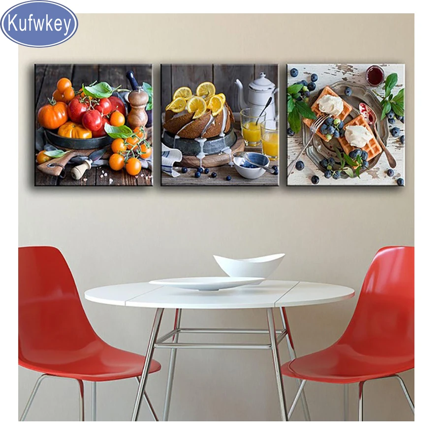 Триптих, алмазная живопись, фруктовый цветок, полноразмерная Алмазная вышивка, незаконченная Вышивка крестом 5d, Алмазная мозаика, кухонный Декор