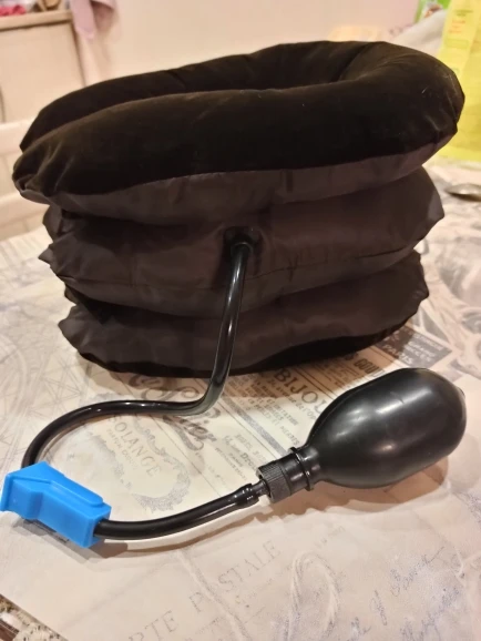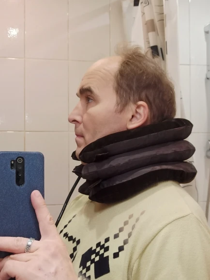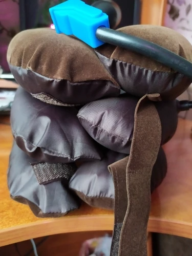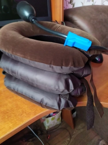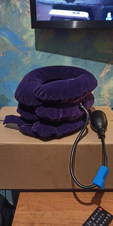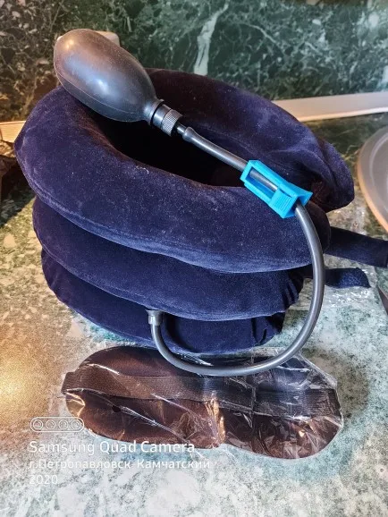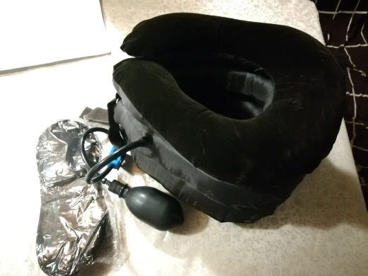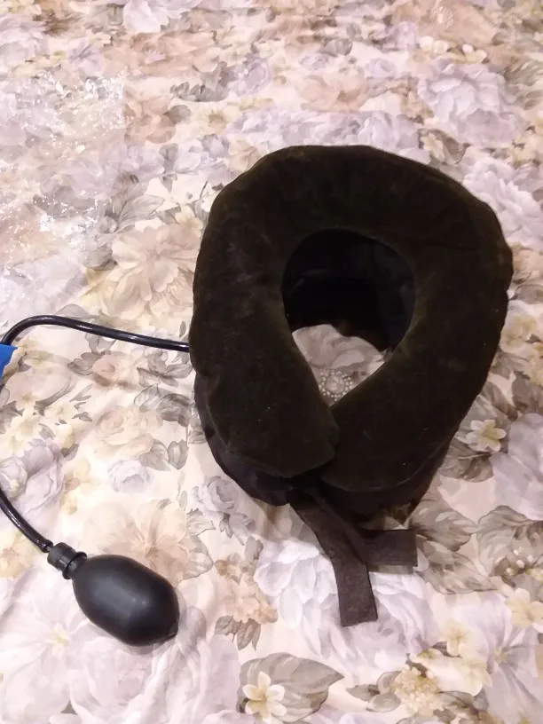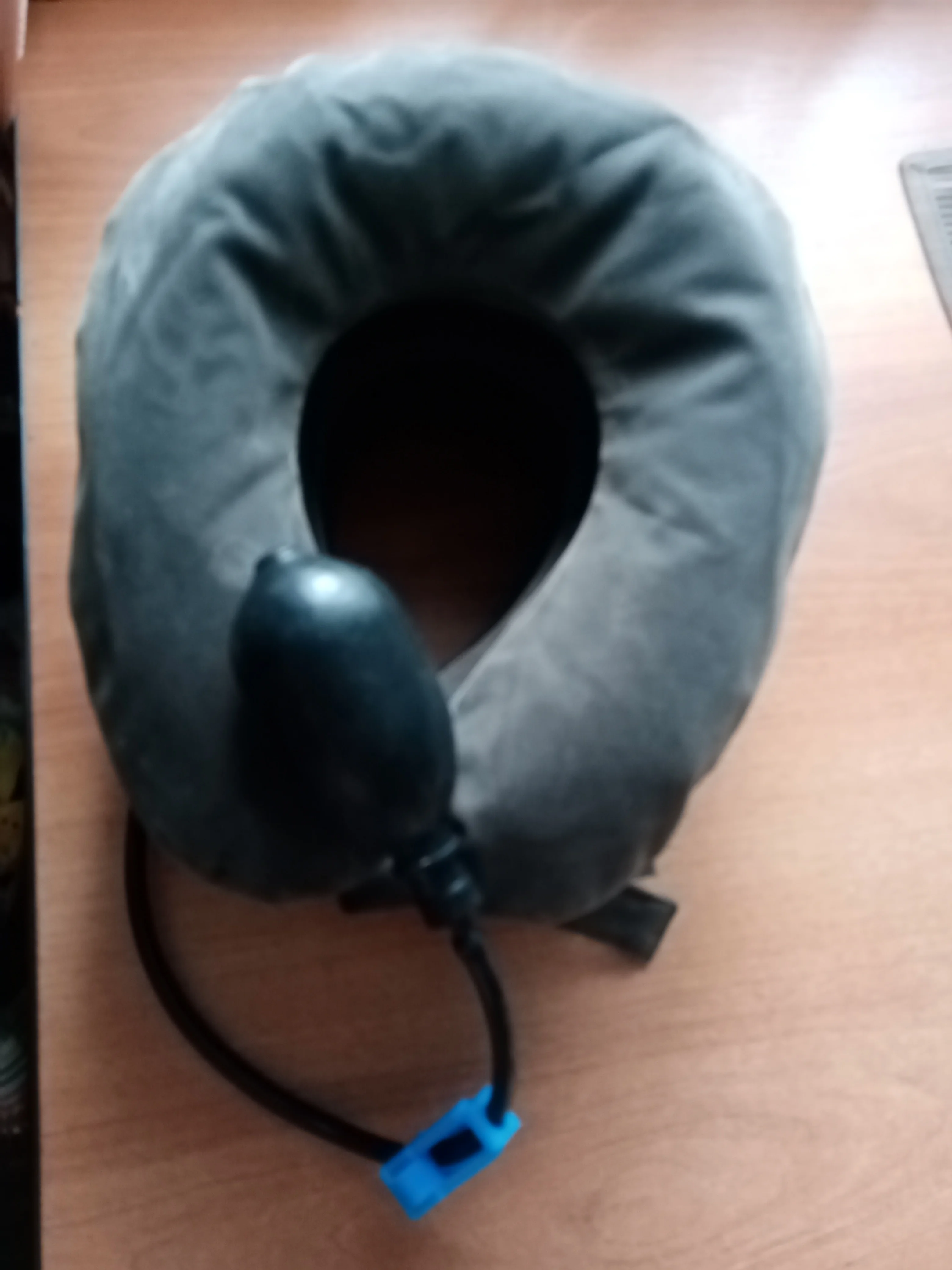 Хорошо держит шею и растягивает позвонки. Минус - слабая груша для накачивания, качает нормально, медленно возвращается в исходное состояние