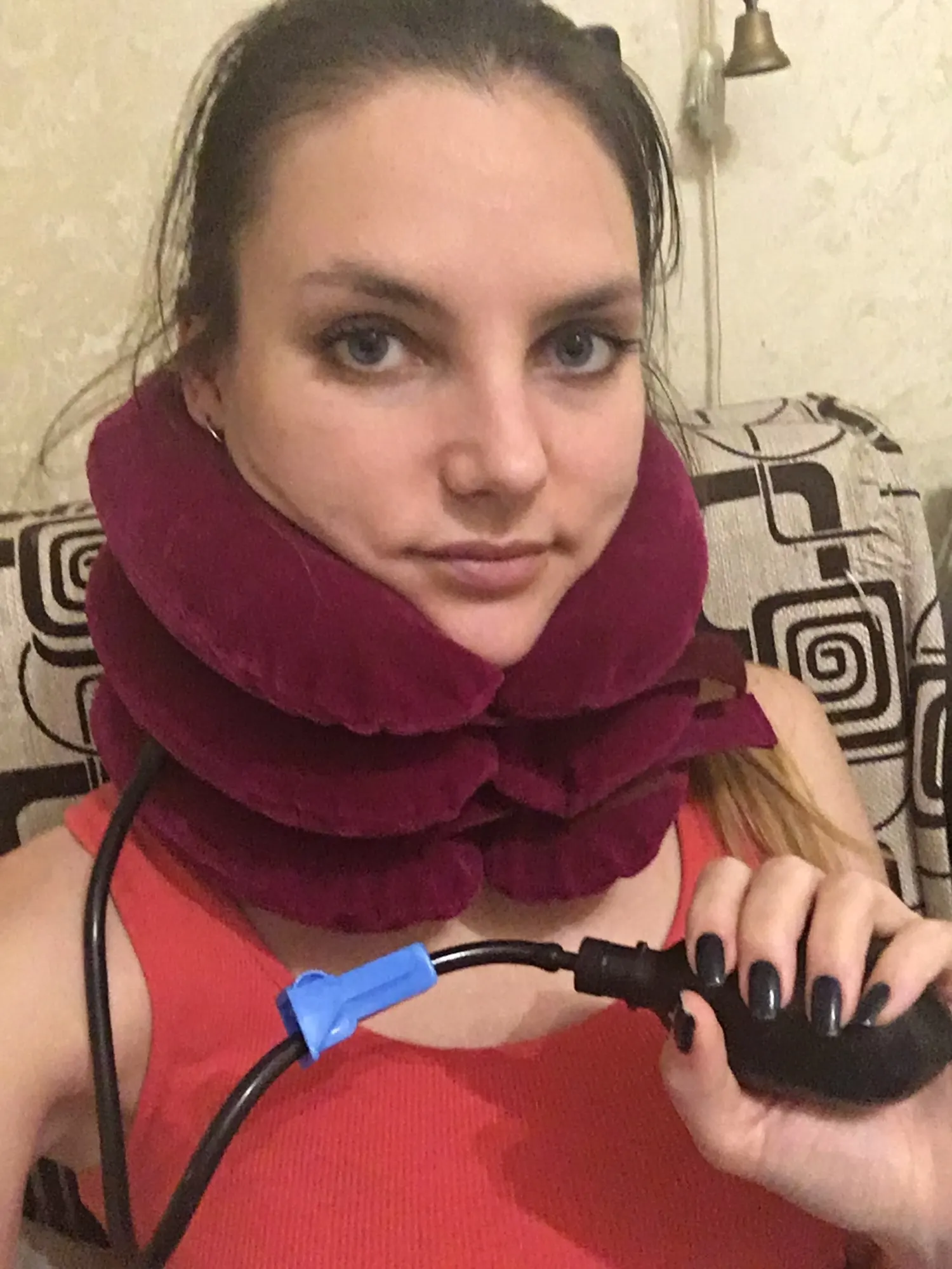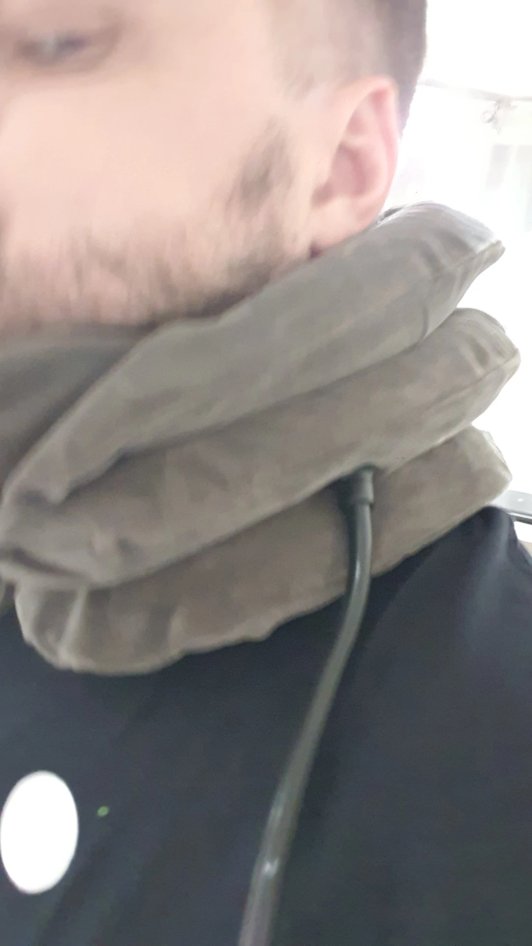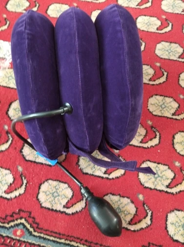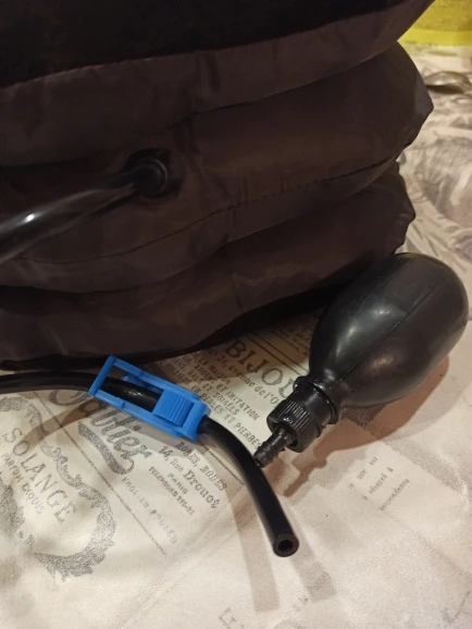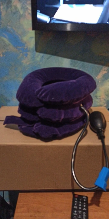 Хорошо держит шею и растягивает позвонки. Минус - слабая груша для накачивания, качает нормально, медленно возвращается в исходное состояние