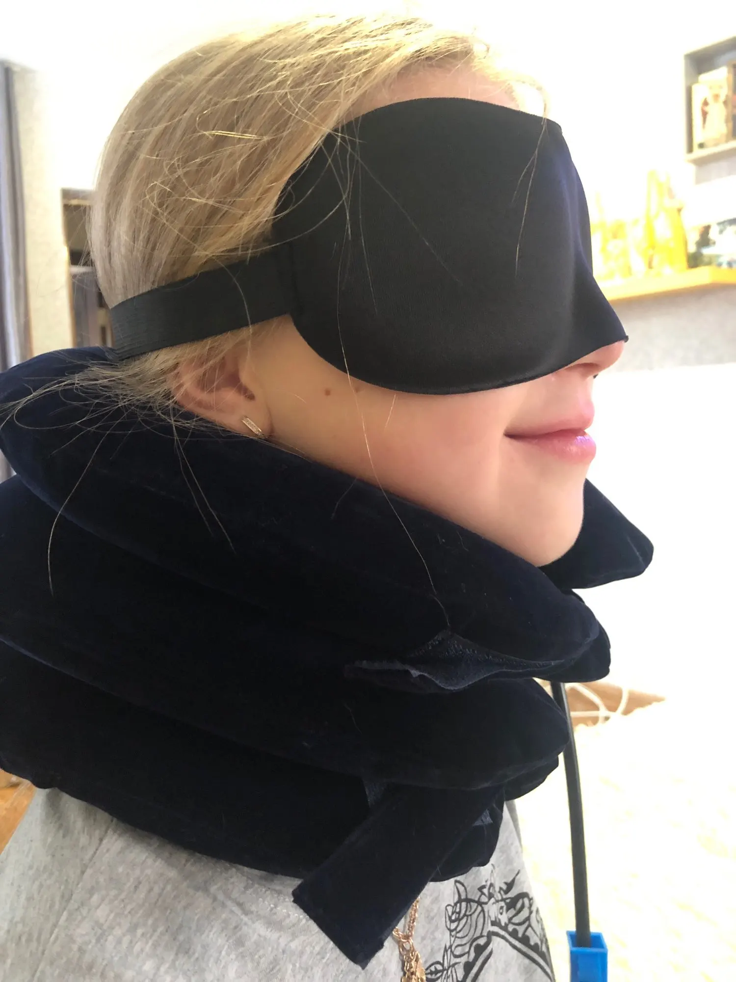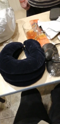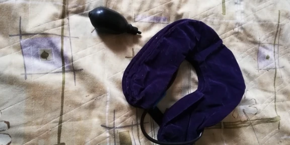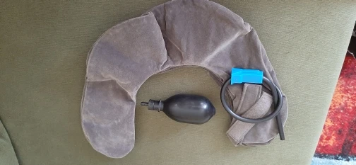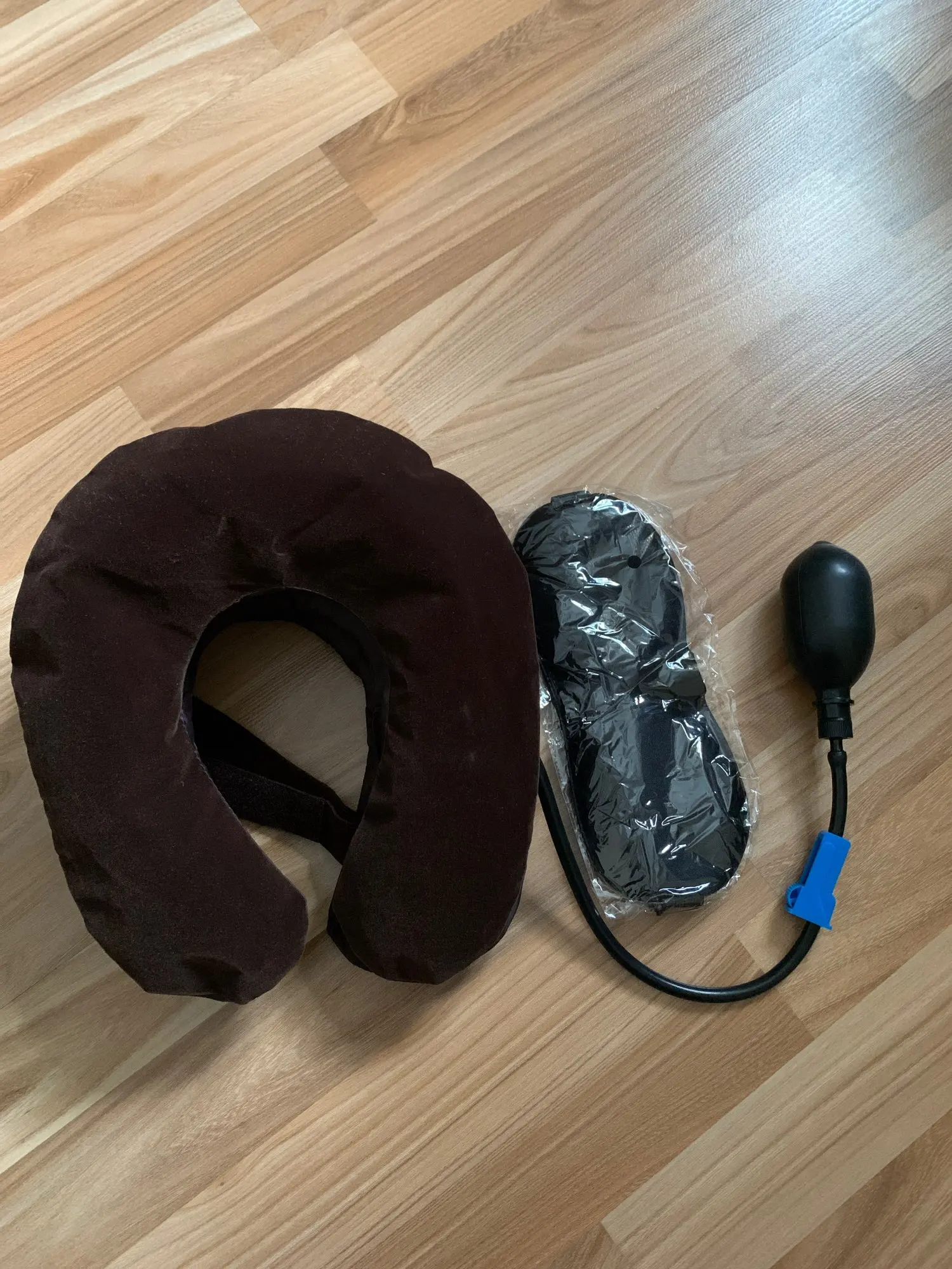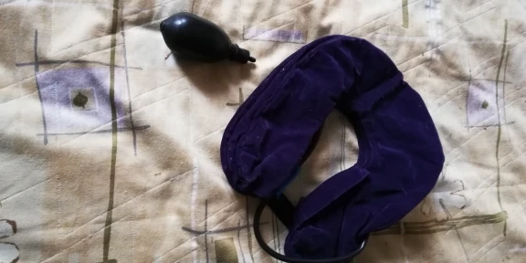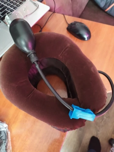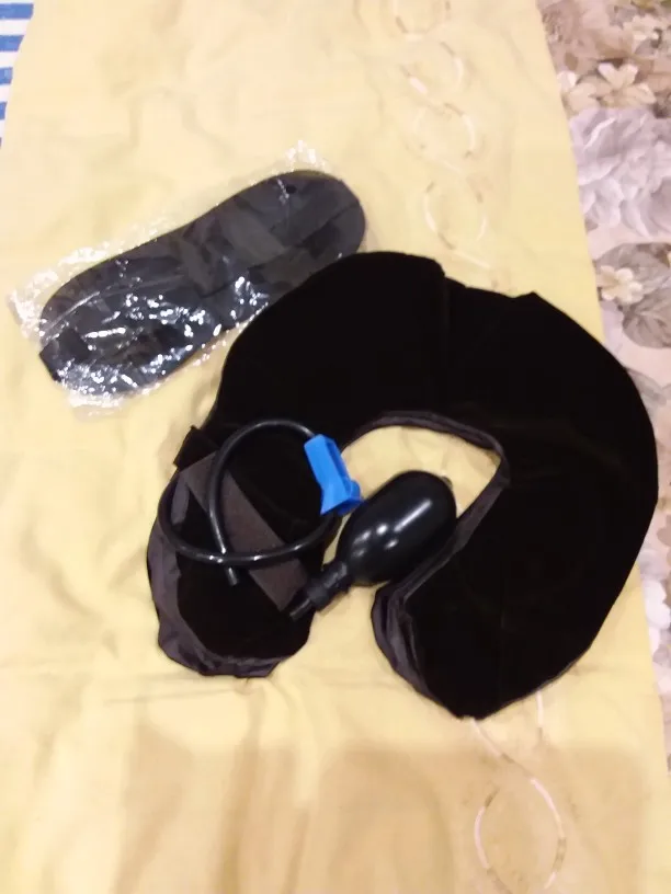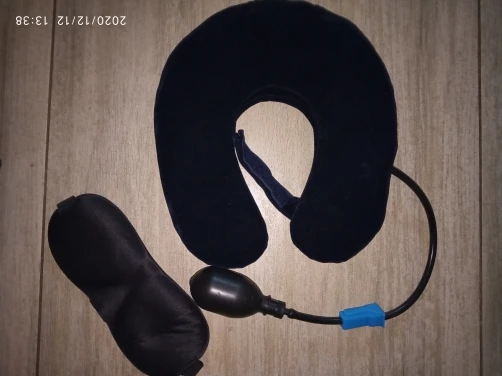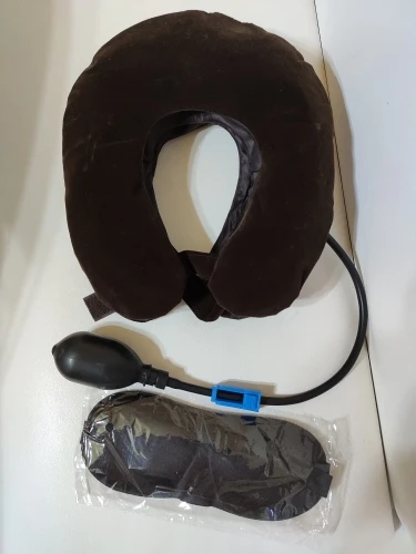 пришла посылка за 20 дней сделано нормально, бархат который прилегает к лицу приятный,держит голову хорошо, мне показалось жарковато но ношу не долго минут 30-40 в день,купил для тренировки осанки хорошо разгружает шею мы за это время как смартфоны поглотили нас сильно вредим шее,поэтому надо восстанавливать.помпу можно снять и ходить без неё, помпа тоже хорошая можно ещё куда нибудь применять,держит воздух хорошо,за неделю как в первый раз накачал так и не сдулась.в комплекте хорошая маска для сна