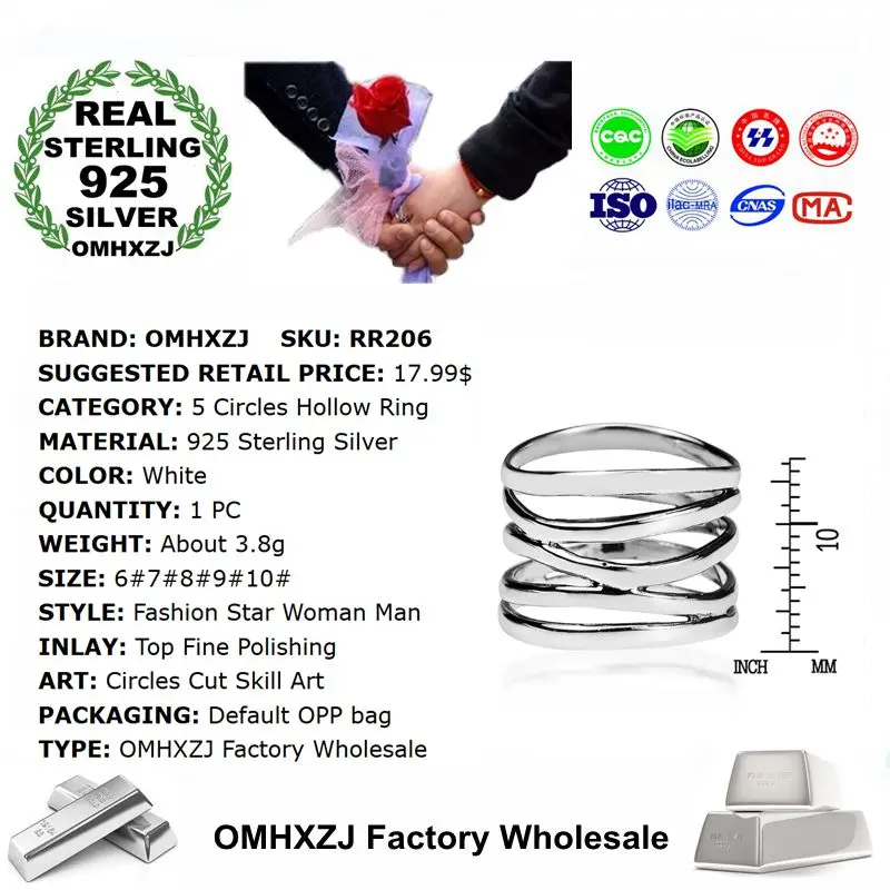 OMHXZJ, оптовая продажа, Европейская мода, женский, мужской, вечерний, свадебный подарок, серебряные кольца, полые кольца из стерлингового серебра 925 пробы RR206