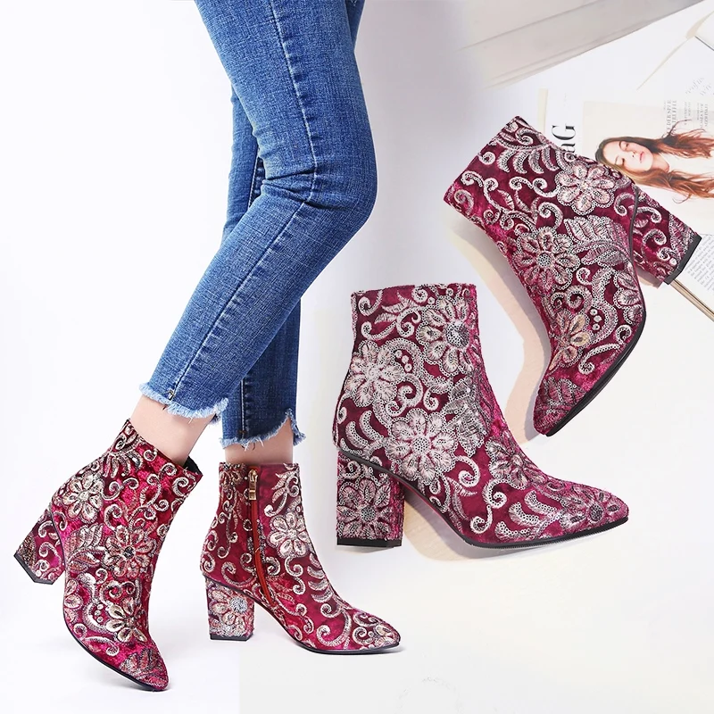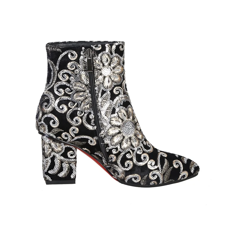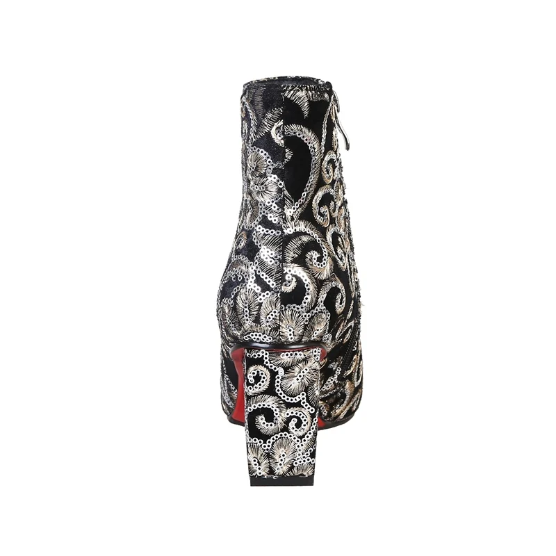Женские ботинки MORAZORA, черные ботинки на высоком каблуке с вышивкой на осень и зиму