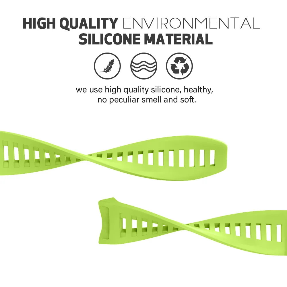 Ремешок изготовлен из высококачественного натурального синтетического силикона, что делает ремешок более мягким и удобным. Кроме того, силиконовый ремешок легкий и дышащий, что делает кровообращение менее чувствительным к аллергии. Износостойкий и нескользящий, с отличной водостойкостью и прочной текстурой.