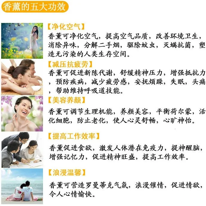 Лаванда: свежие цветы, помогают спать, делают людей спокойными, заставляют Чэнь стать новым Xie, бактерицидным противовоспалительным действием.