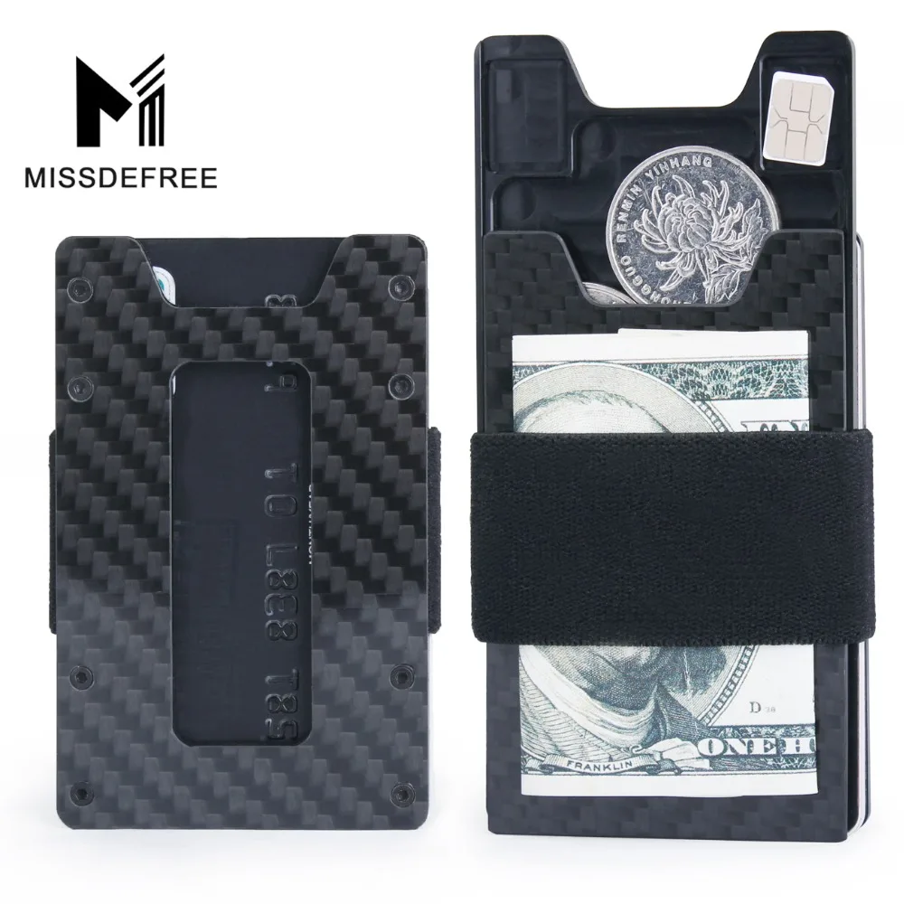 Минималистский углеродное волокно тонкий бумажник для Для мужчин и Для женщин Для мужчин тонкий передний карман бумажник и кредитные держатель для карт с функцией блокировки RFID