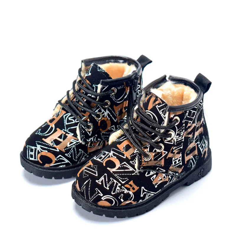 2021 новая зимняя детская обувь, теплые плюшевые ботинки с буквенным принтом для маленьких девочек и мальчиков, зимние ботинки на резиновой подошве, детские ботинки Martin, размер 21-30