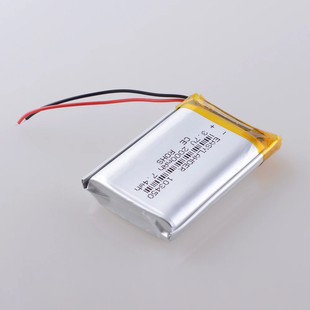 Литий-полимерный перезаряжаемый аккумулятор 3,7 в 2000 мАч 103450 Lipo для мыши, Bluetooth колонок, навигатора, DVD-рекордера