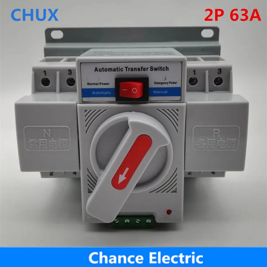 Автоматический переключатель двойной мощности 2P 63A 230V MCB тип Dual Power автоматический переключатель передачи ATS автоматический преобразователь мощности