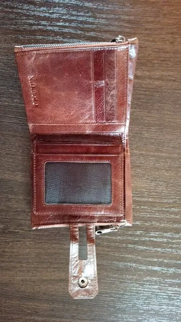 Отличный , компактный кошелёк. Посылка была тщательно упакована, дополнительно, кошелёк был запакован в пакетик и помещён в коробочку. Всё молнии и кнопка рабочие. Один отдел под бумажные купюры, два- под мелочь. Множество отделений для карточек. Сделан очень аккуратно. Товар и продавца рекомендую!